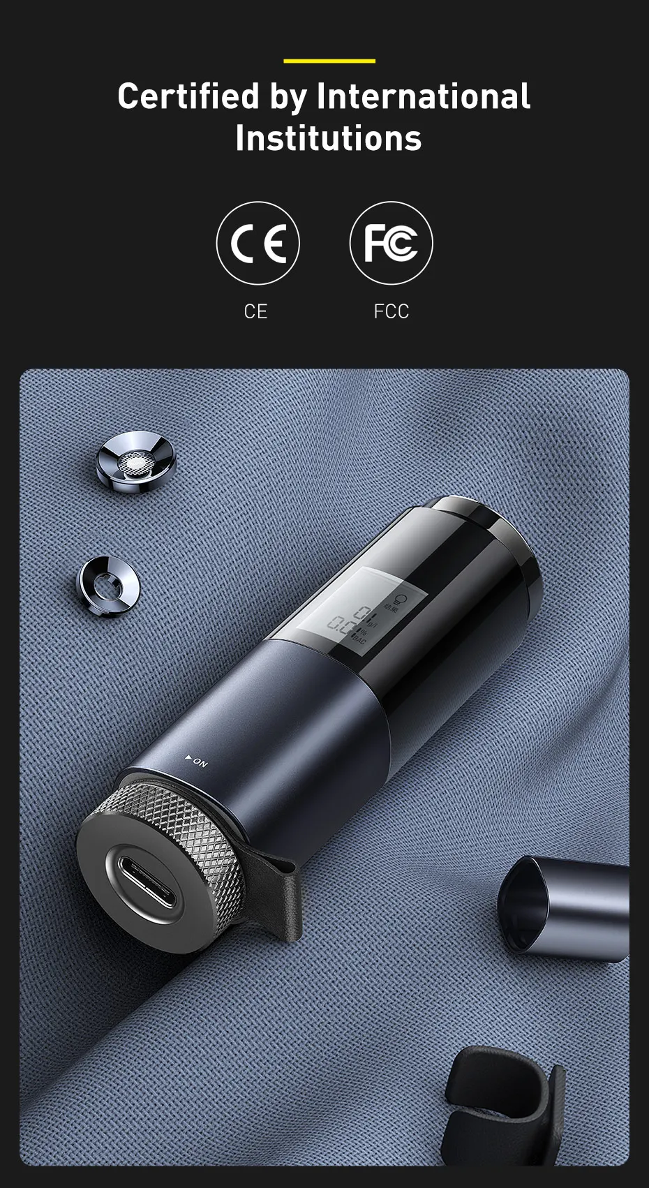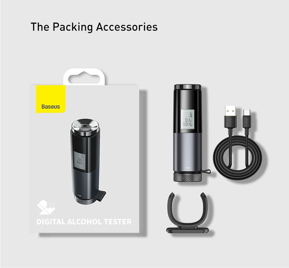 • Pruebas sin contacto :El probador de alcohol sin contacto portátil Baseus no requiere contacto físico con el usuario, lo que lo hace más higiénico y cómodo de usar.