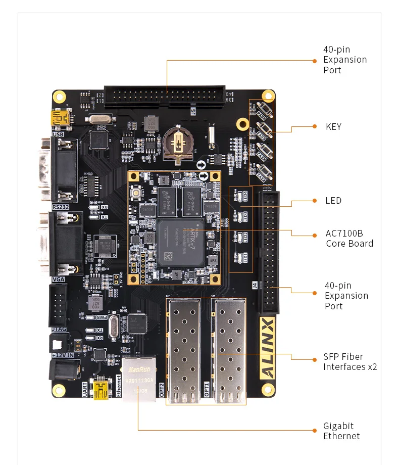 Comprar ALINX AX7102: XILINX Artix-7 XC7A100T Placa de desarrollo FPGA A7 SoMs SFP Gigabit Ethernet VGA Placa de evaluación