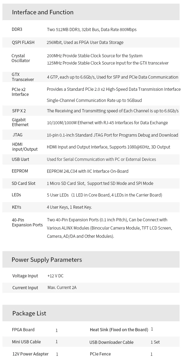 ALINX AX7A200B: Artix-7 XC7A200T XILINX FPGA A7 SoMs XC7A 200T SFP PCIe Board