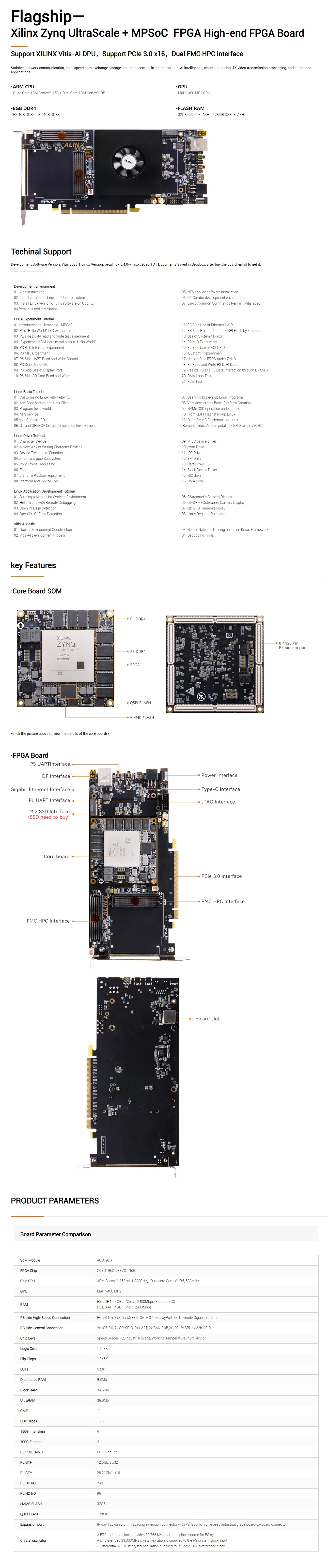 ALINX Z19-P: Xilinx Zynq UltraScale+ MPSoC PCIE AI Placa FPGA XCZU19EG Placa de demostraciónAlinx