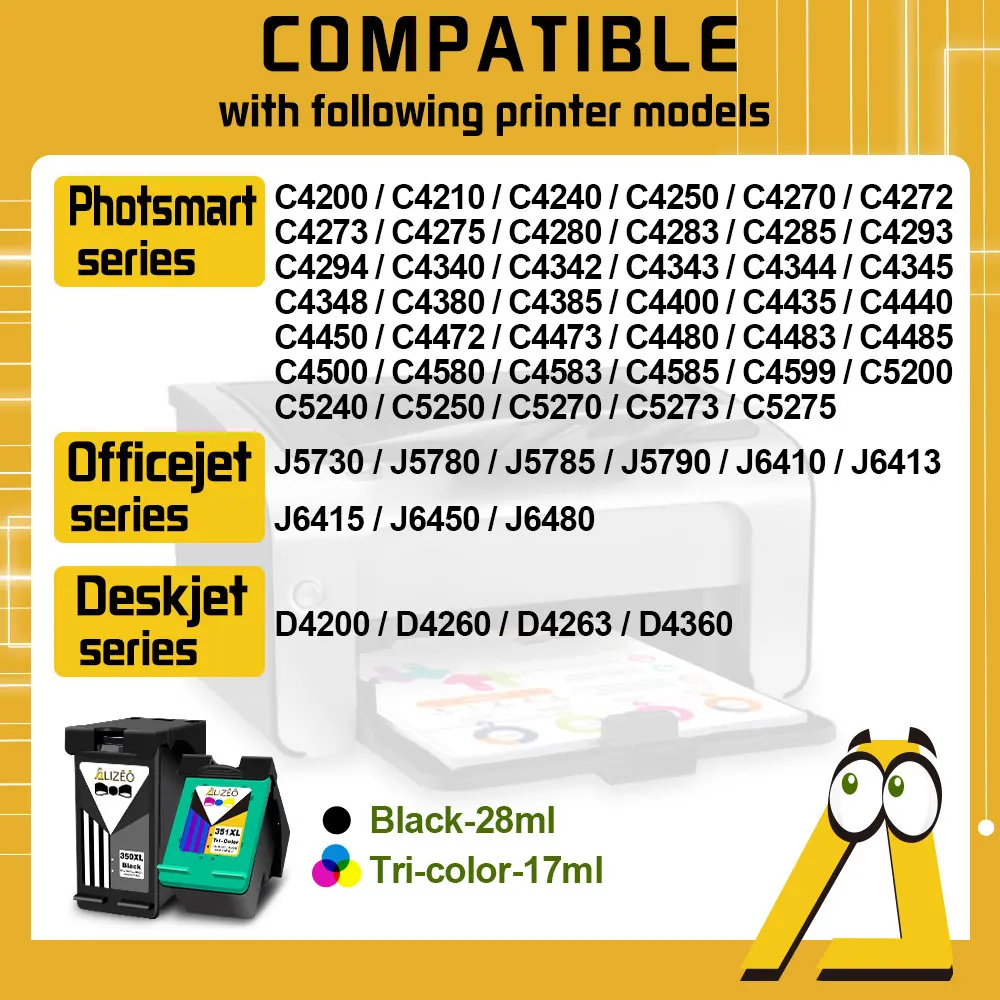 Comprar Alizeo-cartuchos de tinta de repuesto para impresora HP, recambio de tinta remanufacturado para HP Photsmart C4294, C4340, C4344, C4435, C4440, C4472, C4473, C4480, 350XL, 351XL