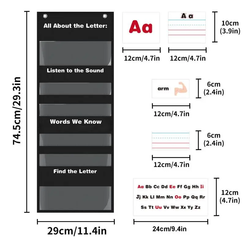 5. Ahorro de espacio: Ideal o hogares para aulas, este gráfico de bolsillo maximiza el aprendizaje con espacio de visualización limitado, manteniendo las letras organizadas y accesibles