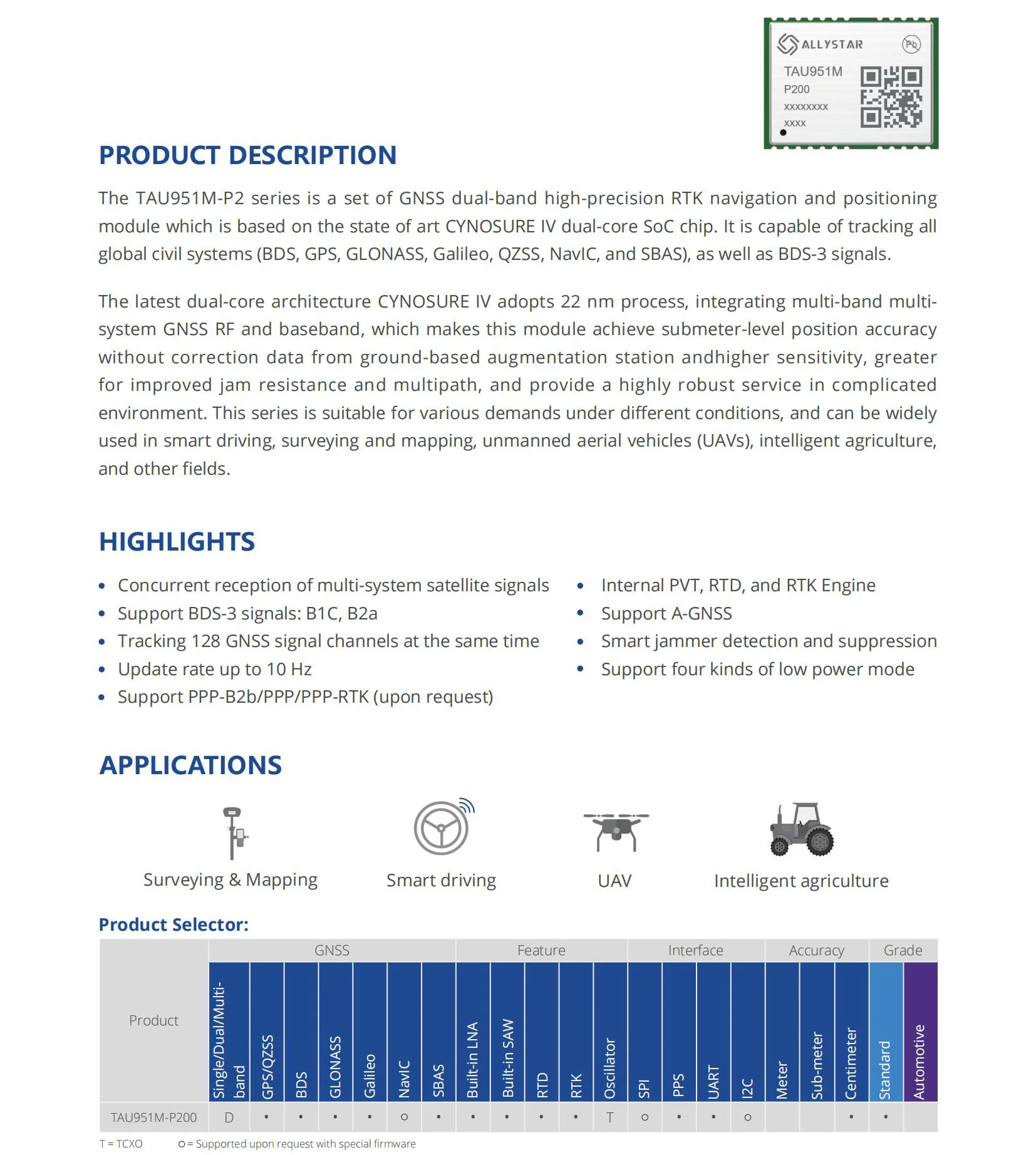 Comprar Allystar TAU951M-P200 sistema completo módulo RTK de doble frecuencia nivel centimétrico de alta precisión reemplazar Quectel 10Hz LC29HEA GNSS