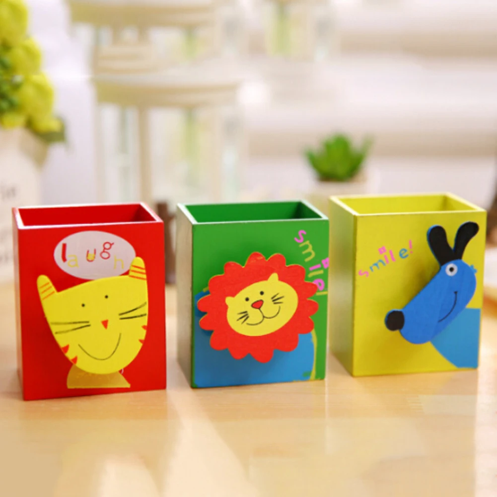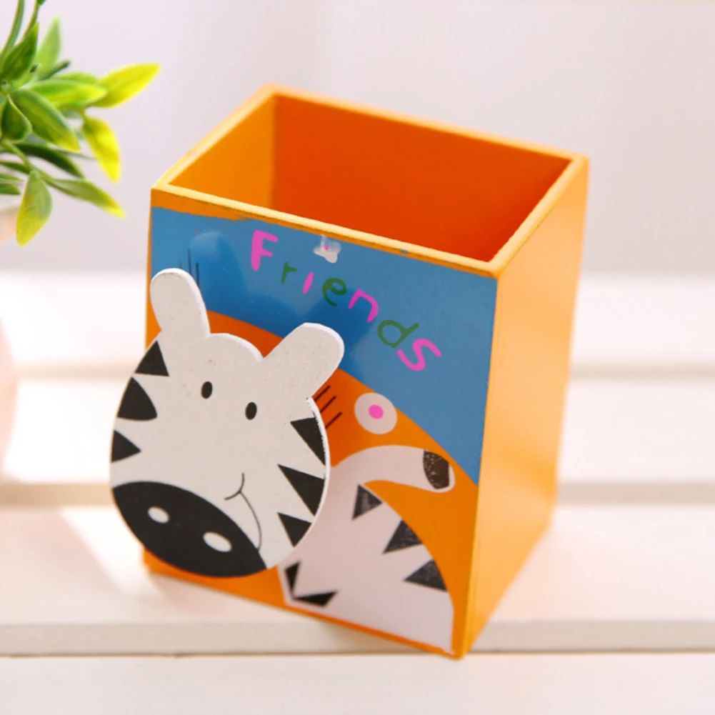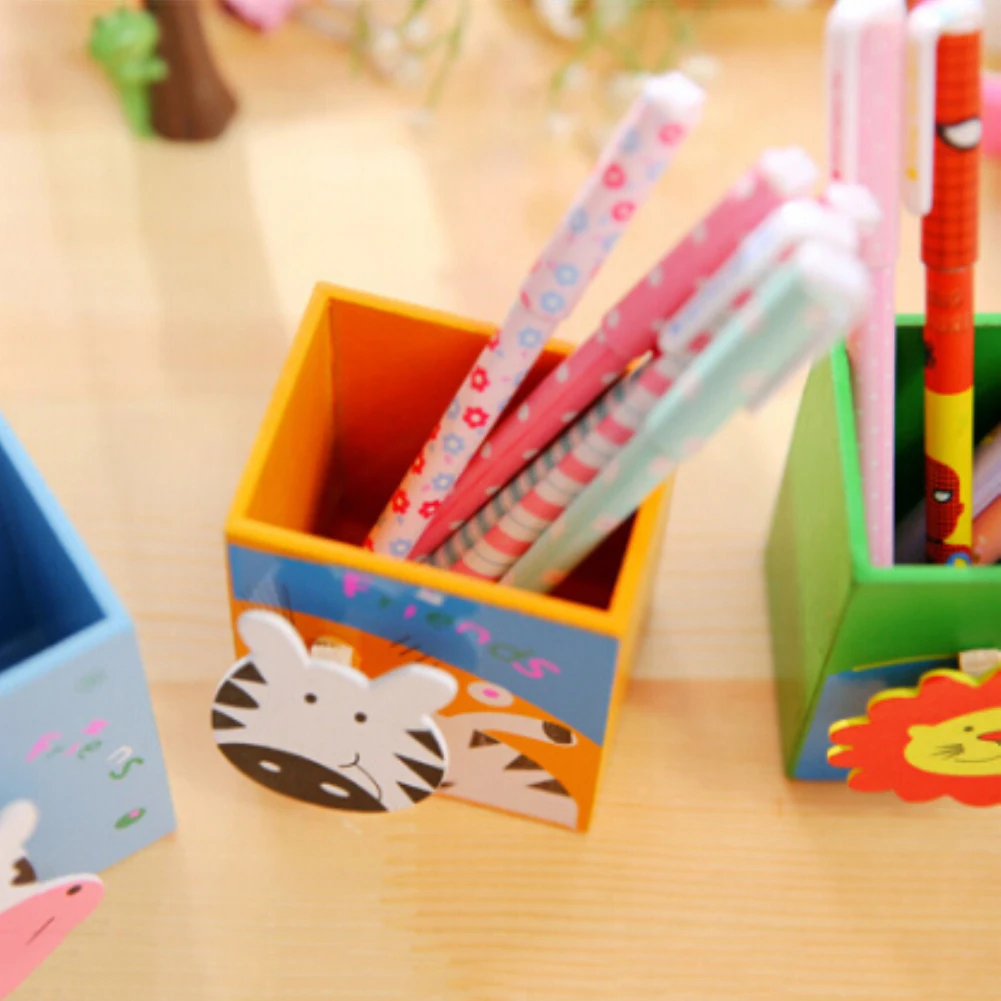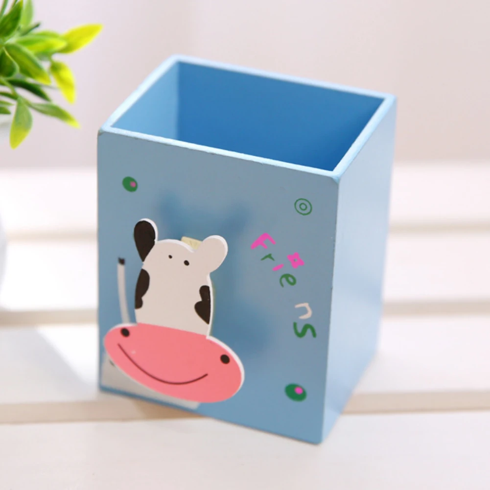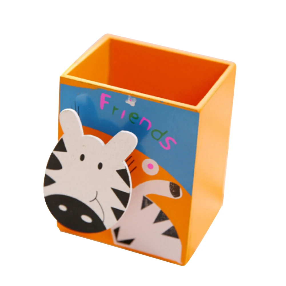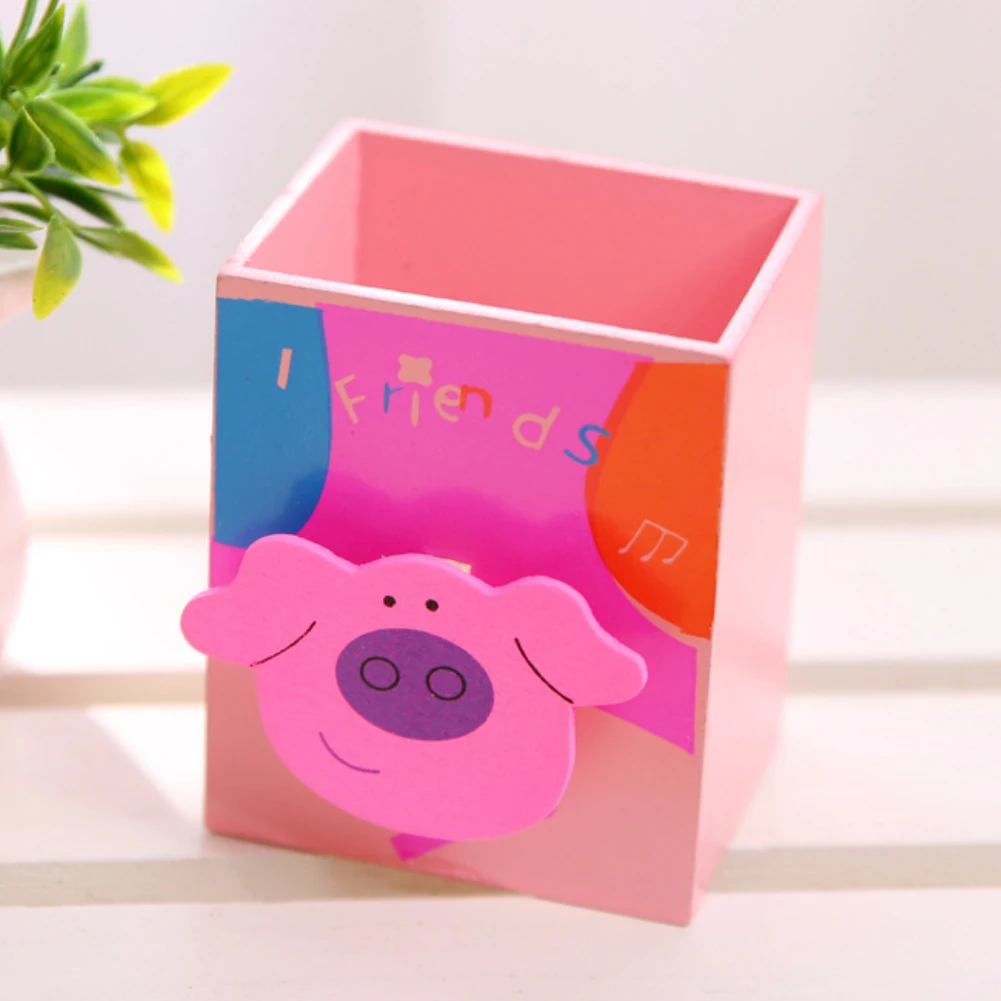 Moda niños dibujos animados cerdo Animal patrón madera pluma contenedor portalápices