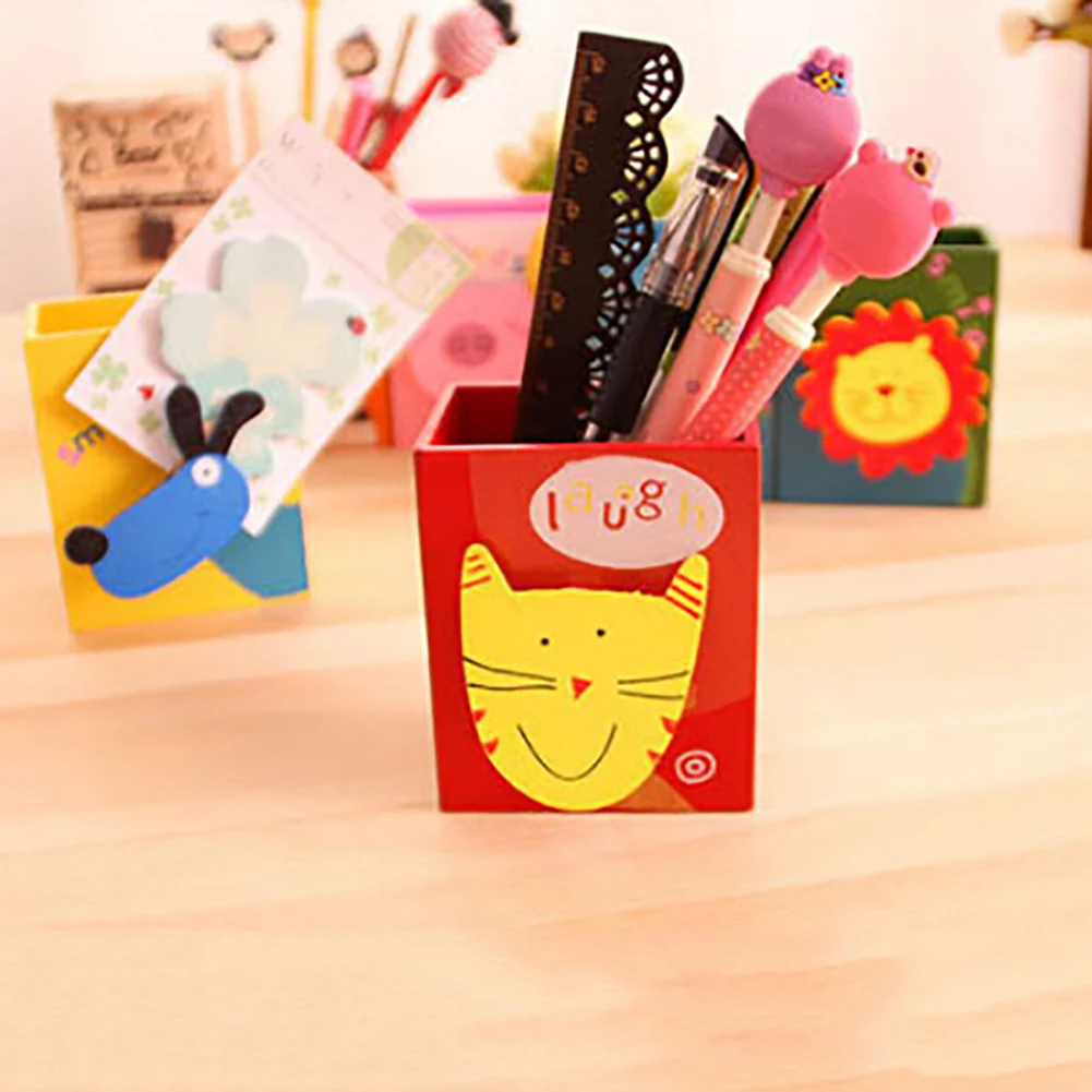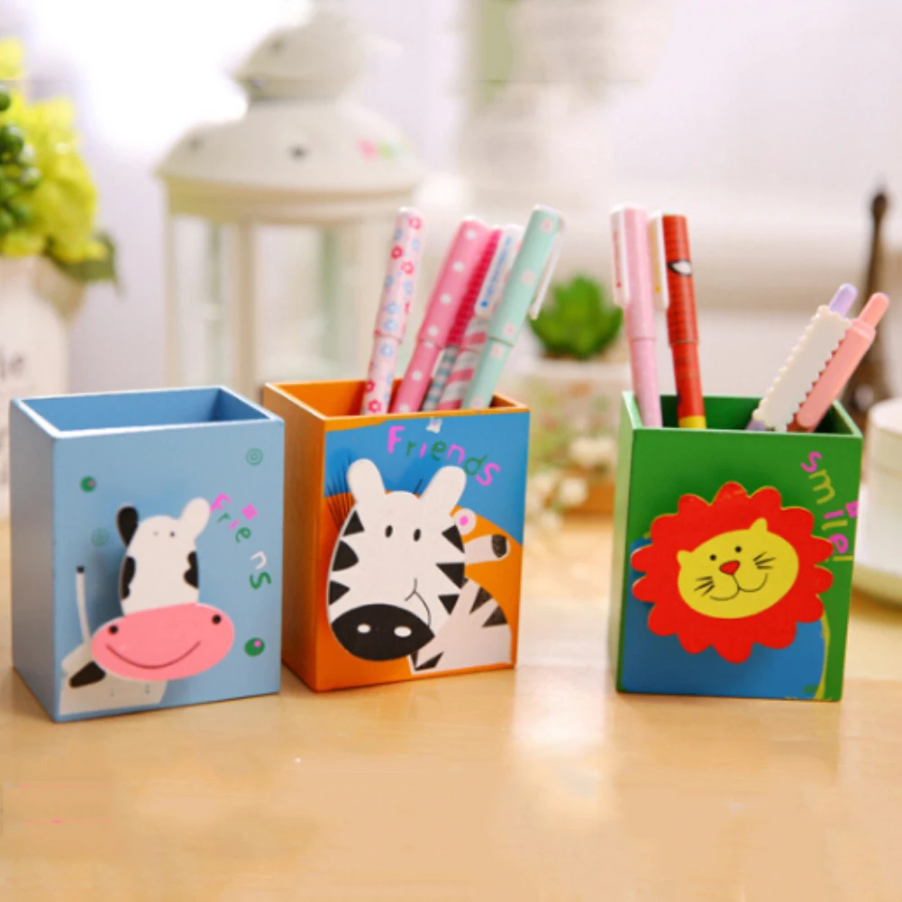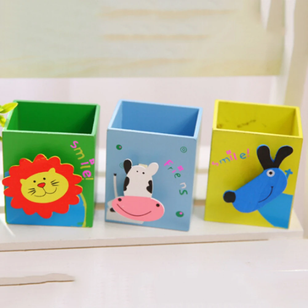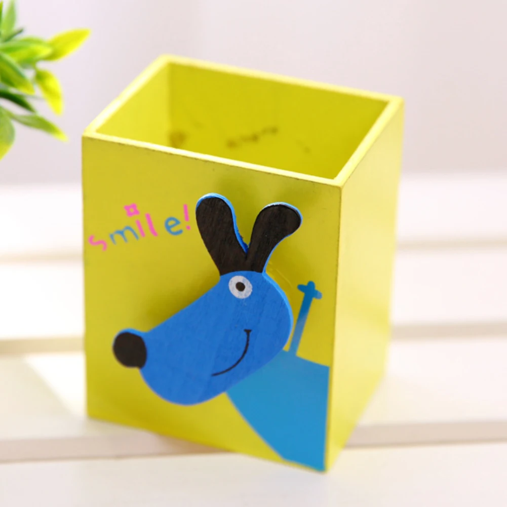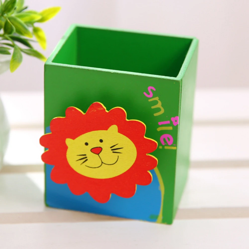 Moda niños dibujos animados cerdo Animal patrón madera pluma contenedor portalápices