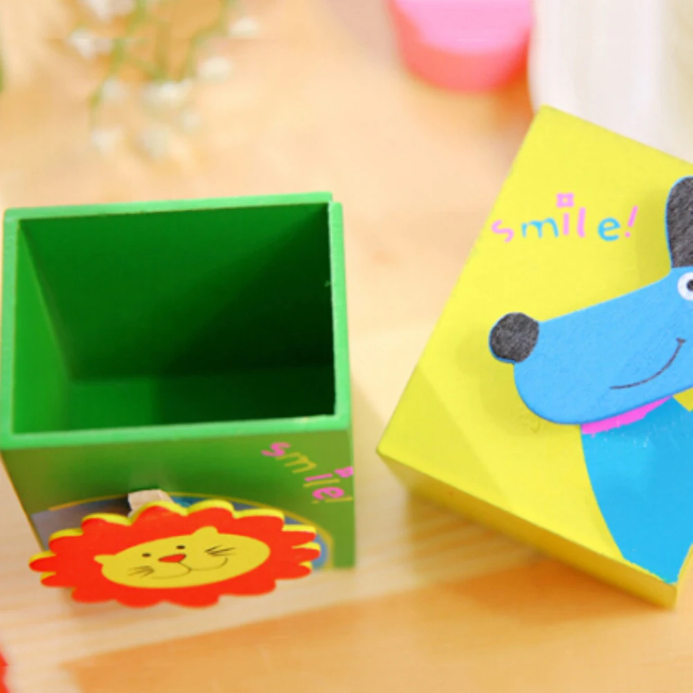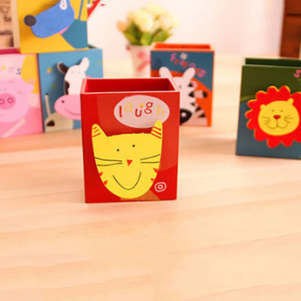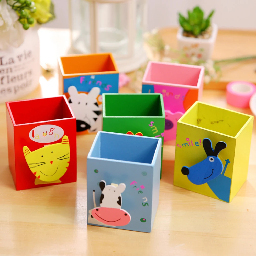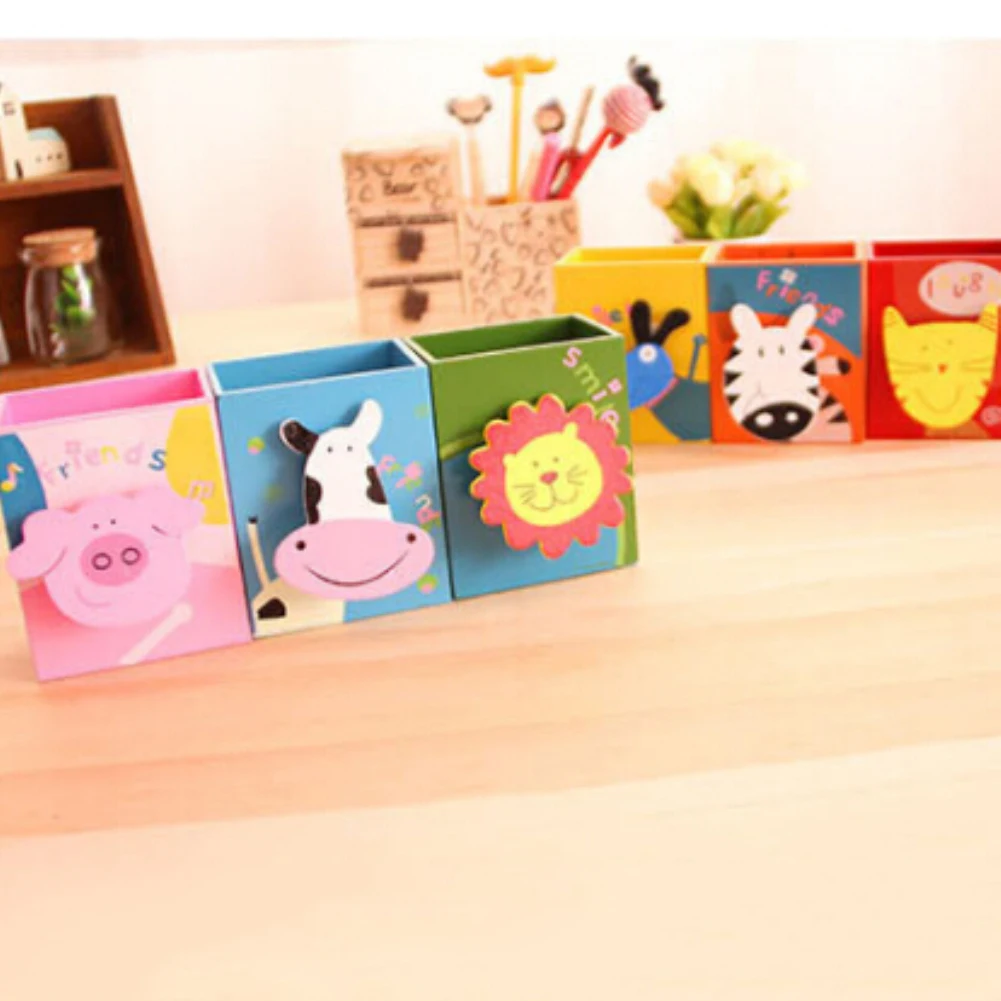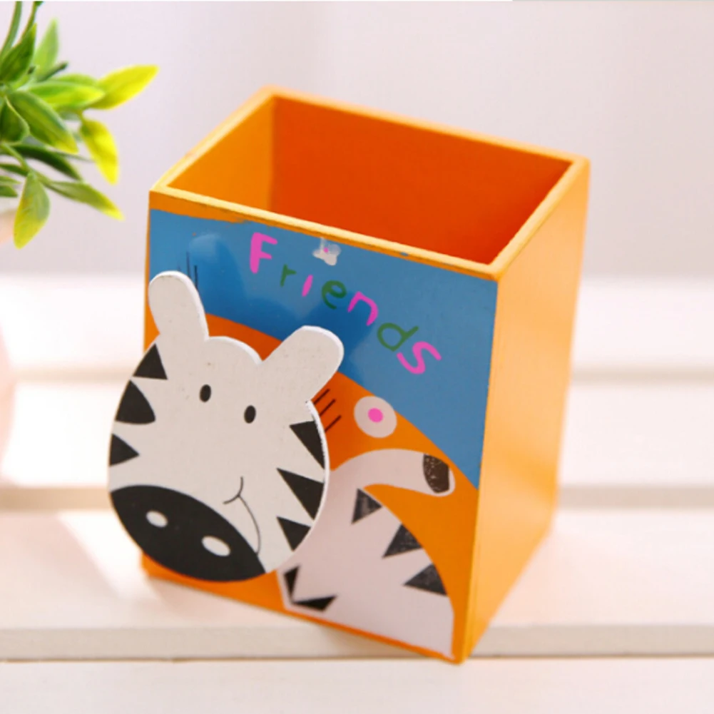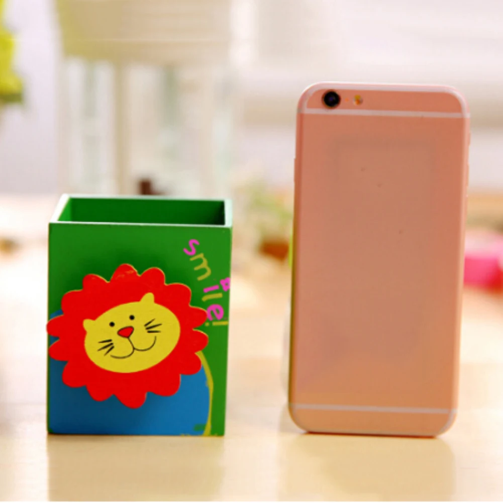 Moda niños dibujos animados cerdo Animal patrón madera pluma contenedor portalápices