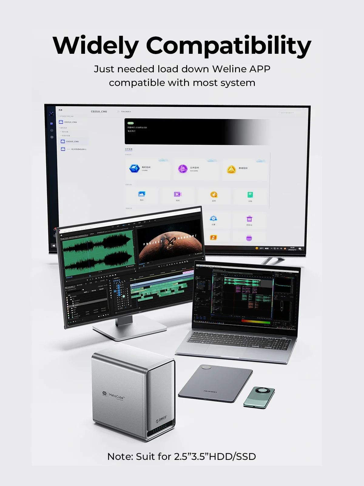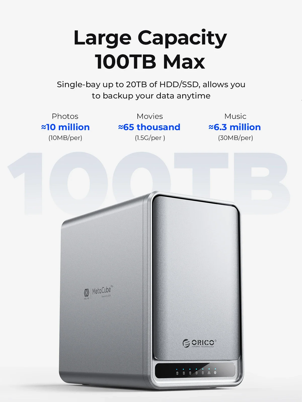 ORICO MetaCube es para usuarios generales; después de cargar un disco duro SATA y conectarse a la red doméstica, puede almacenar todo el contenido digital en su propio dispositivo de almacenamiento privado.