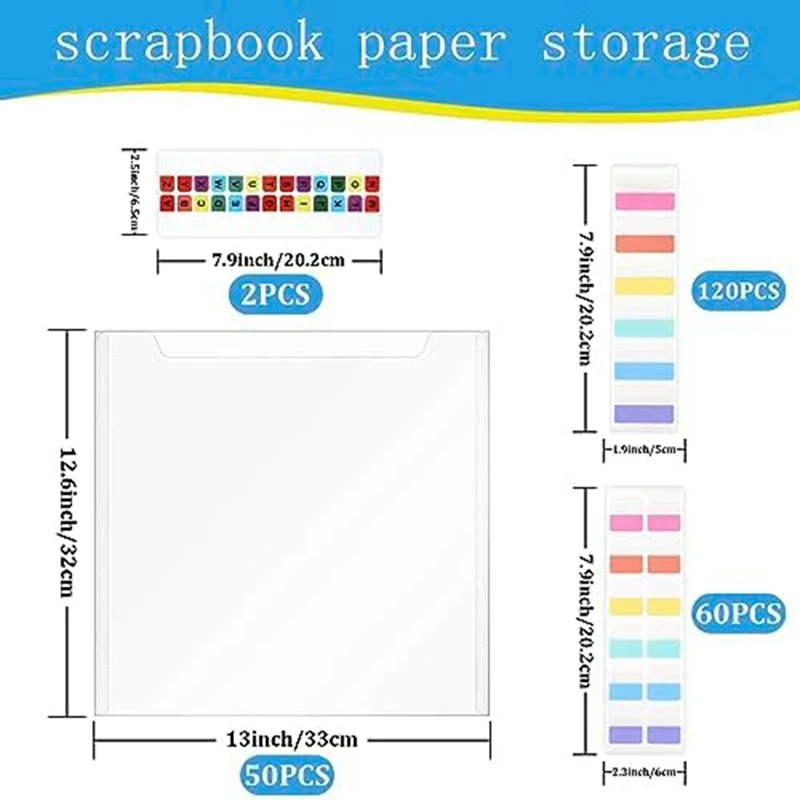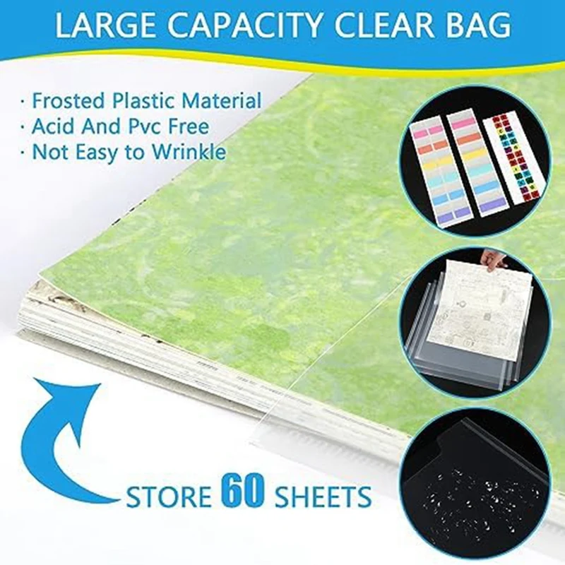 50 piezas 30x30 pulgadas Almacenamiento de papel de álbum de recortes organizador de almacenamiento de papel de álbum de recortes transparente vinilo, cartulina, fotos y dibujos duraderos