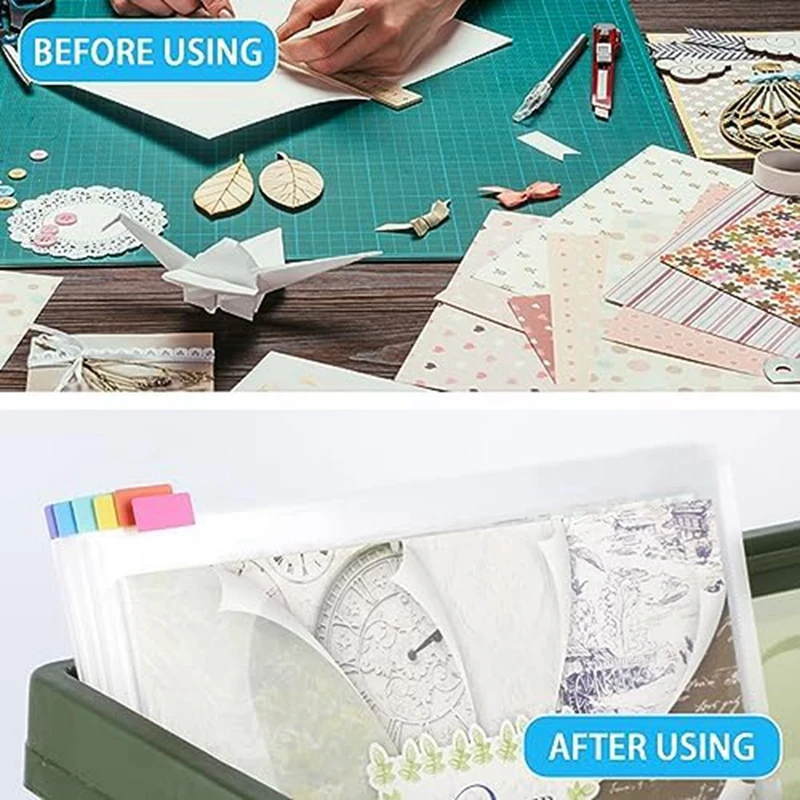 El estante de almacenamiento transparente proporciona suficiente protección para mantener los papeles de su álbum de recortes en perfectas condiciones. El diseño ligero hace que sea fácil llevar el papel de tu álbum de recortes contigo dondequiera que vayas, por lo que es perfecto para aquellos que necesitan llevar sus suministros de artesanía con ellos.