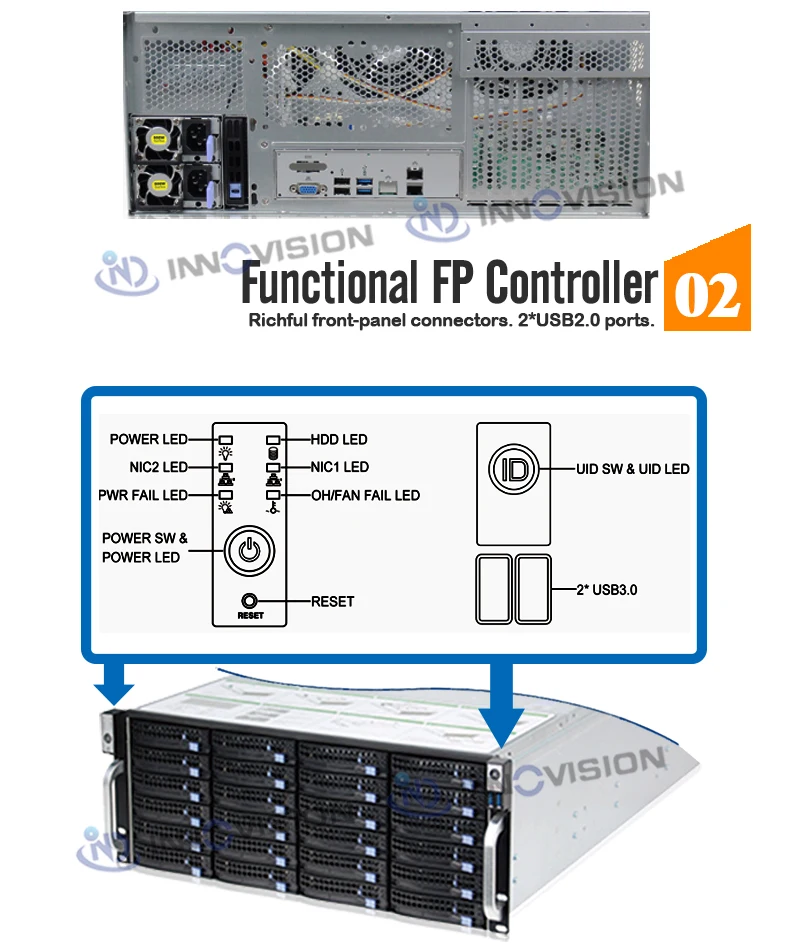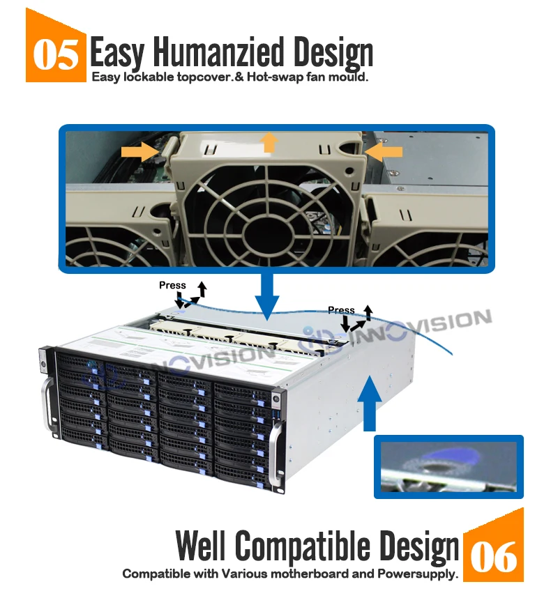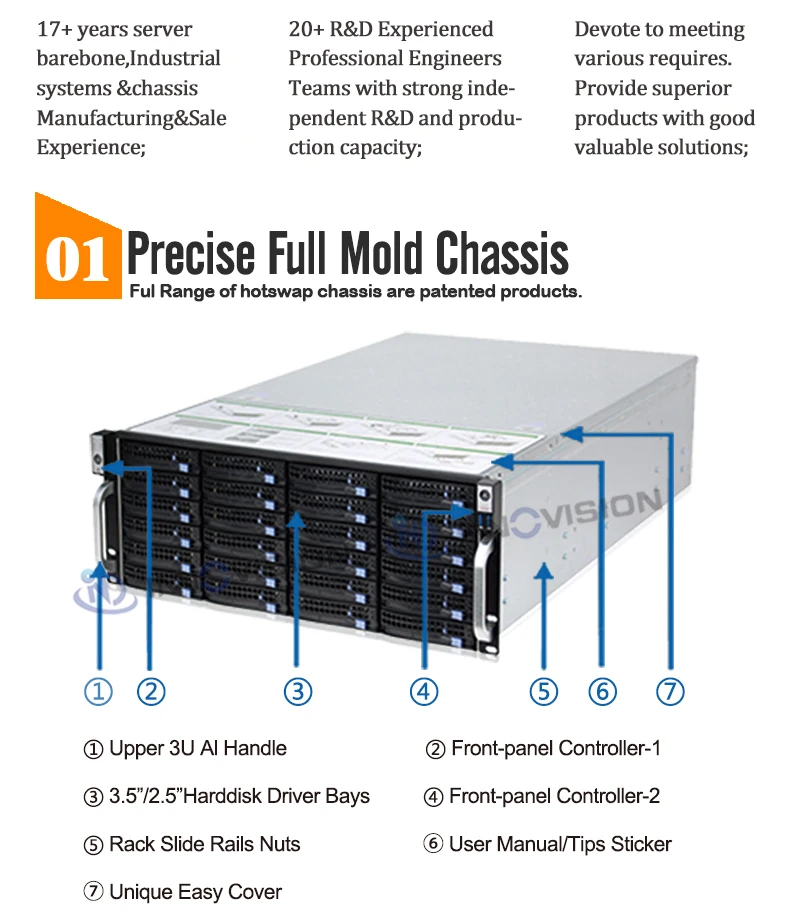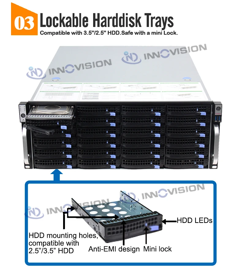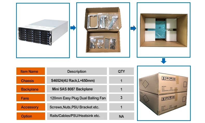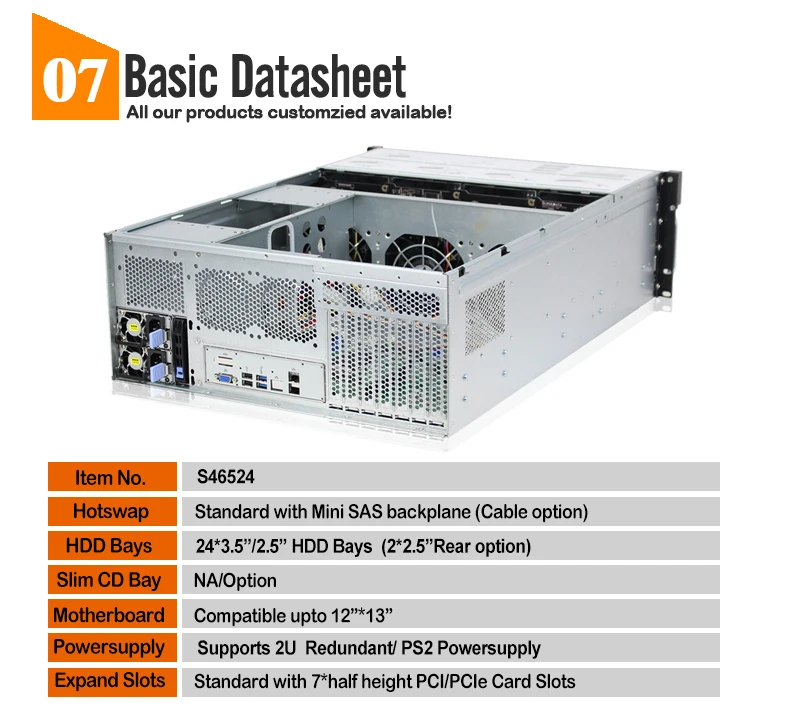 Almacenamiento supergrande 24 bahs 4u hotswap rack NVR NAS chasis de servidor S46524, servidor personalizado