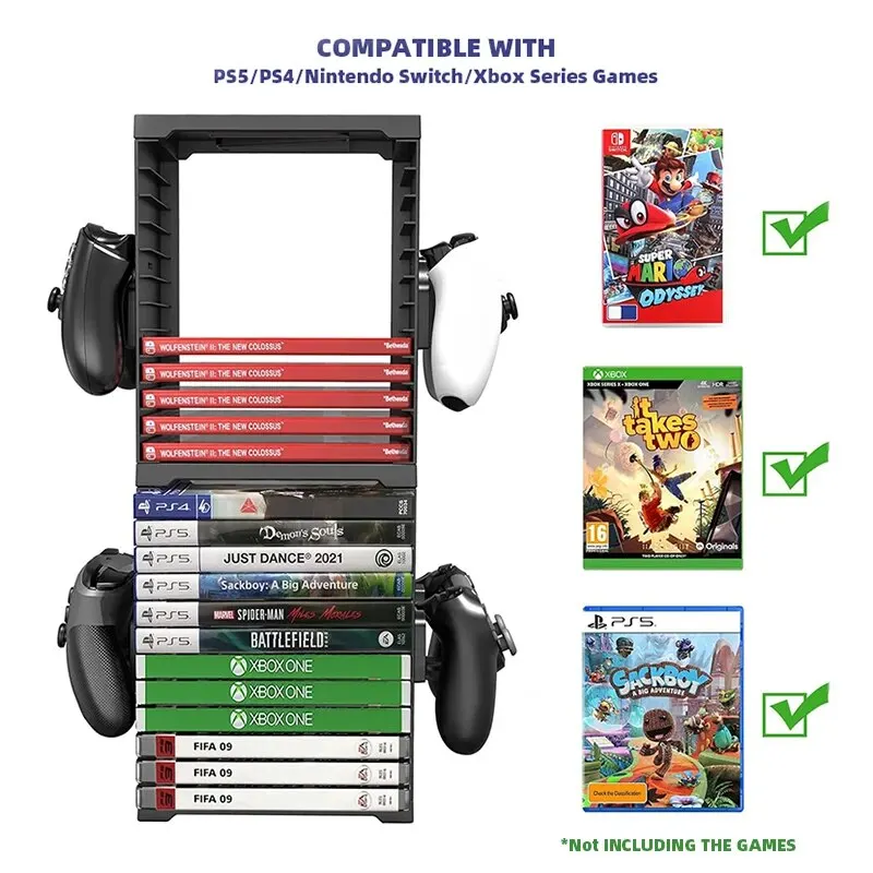 Compatible con PS5, PS4, Xbox One/Xbox series X/Nintendo Switch consolas de juegos como un soporte vertical y organizador que hace que los videojuegos estén ordenados en un espacio pequeño.