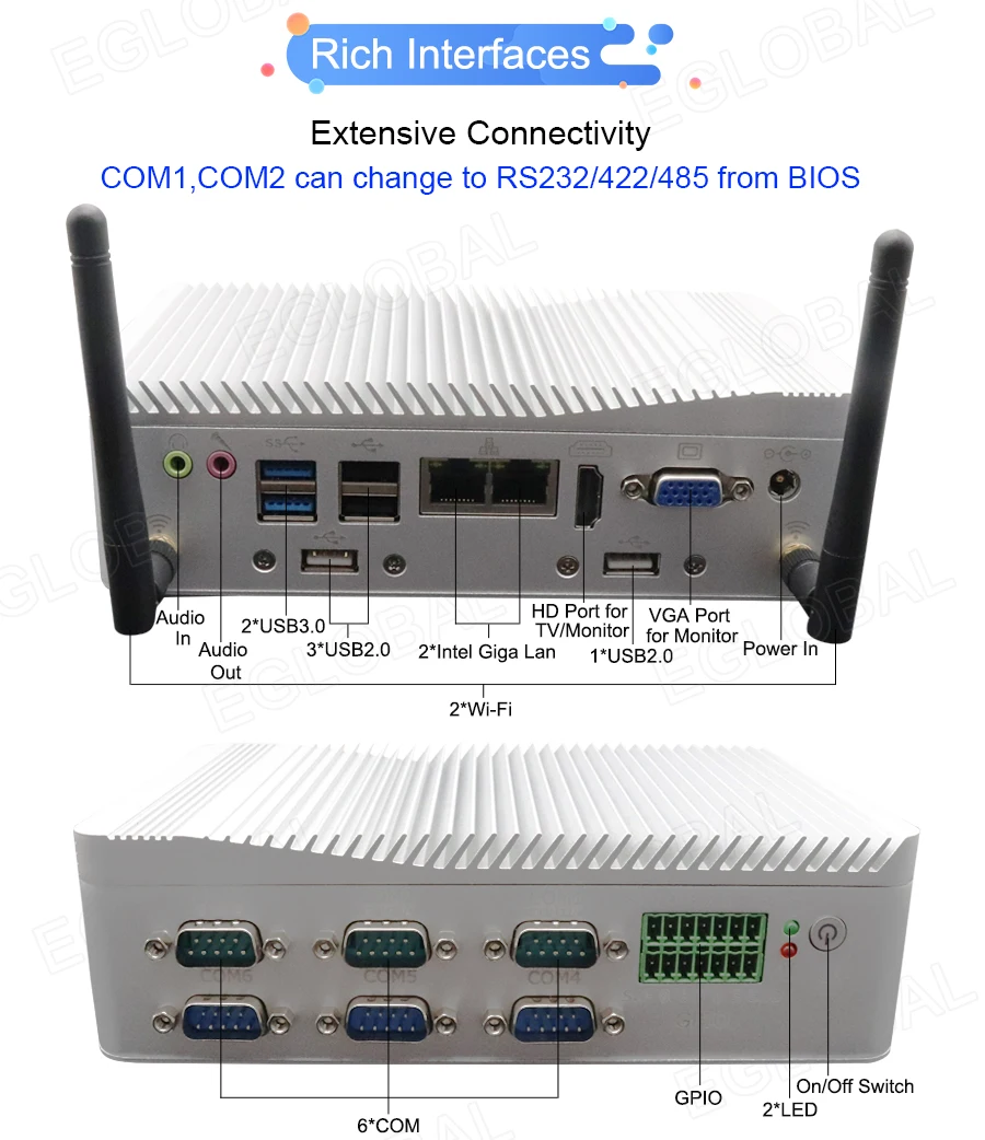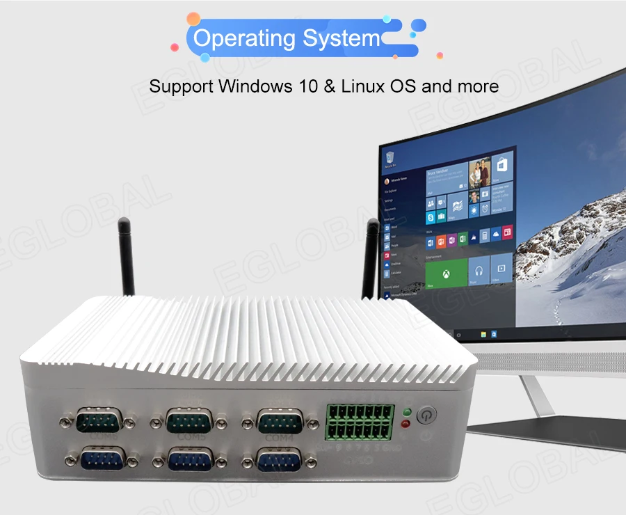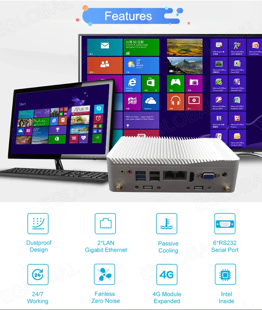 Comprar Almighty-Mini ordenador Industrial sin ventilador, IPC, Intel Core i3 6157U, 7x24 horas, 2 x LAN, 6 x USB, 6 x COM, GPIO, LPT, HD, VGA, 4G/3G, WiFi