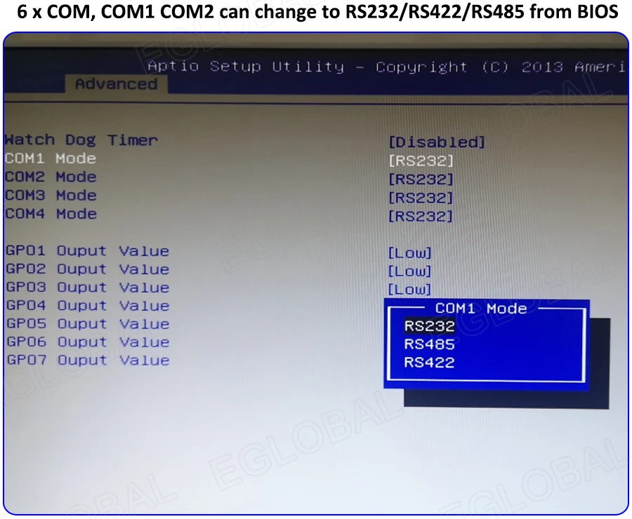 -2 Intel i211 Gigabit RJ45 LAN y 2 COM pueden cambiar a RS232/RS422 desde BIOS.