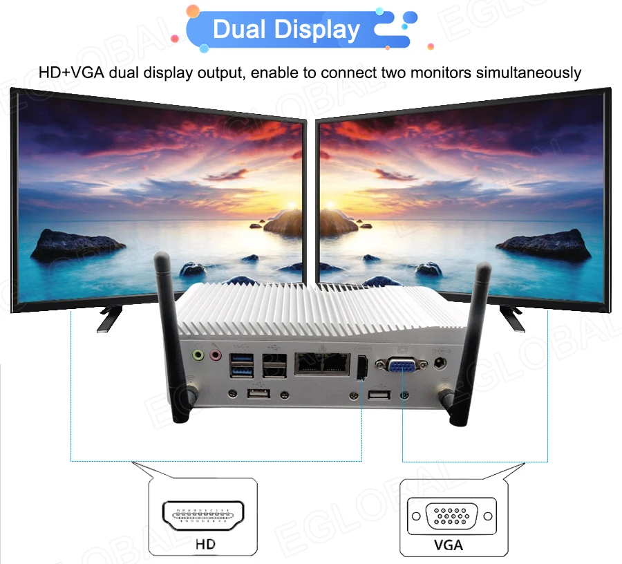 -Admite Salida de pantalla dual VGA + HDMI sincronizada.