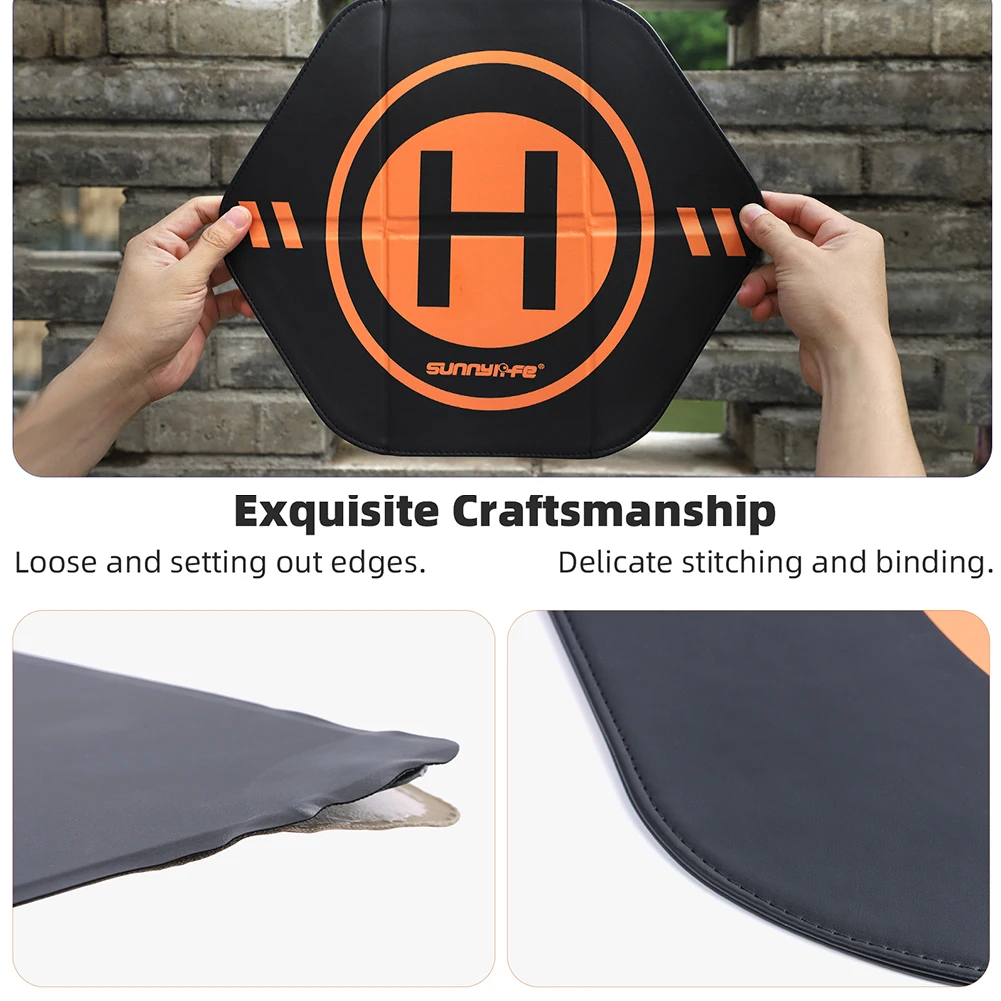 3.Material:Fabricada con material de cuero de doble cara de alta calidad, nuestra alfombra de aterrizaje plegable para drones cuenta con cualidades impermeables y resistentes al desgaste, manteniendo excelentes condiciones incluso en condiciones climáticas adversas, lo que garantiza longevidad y confiabilidad.