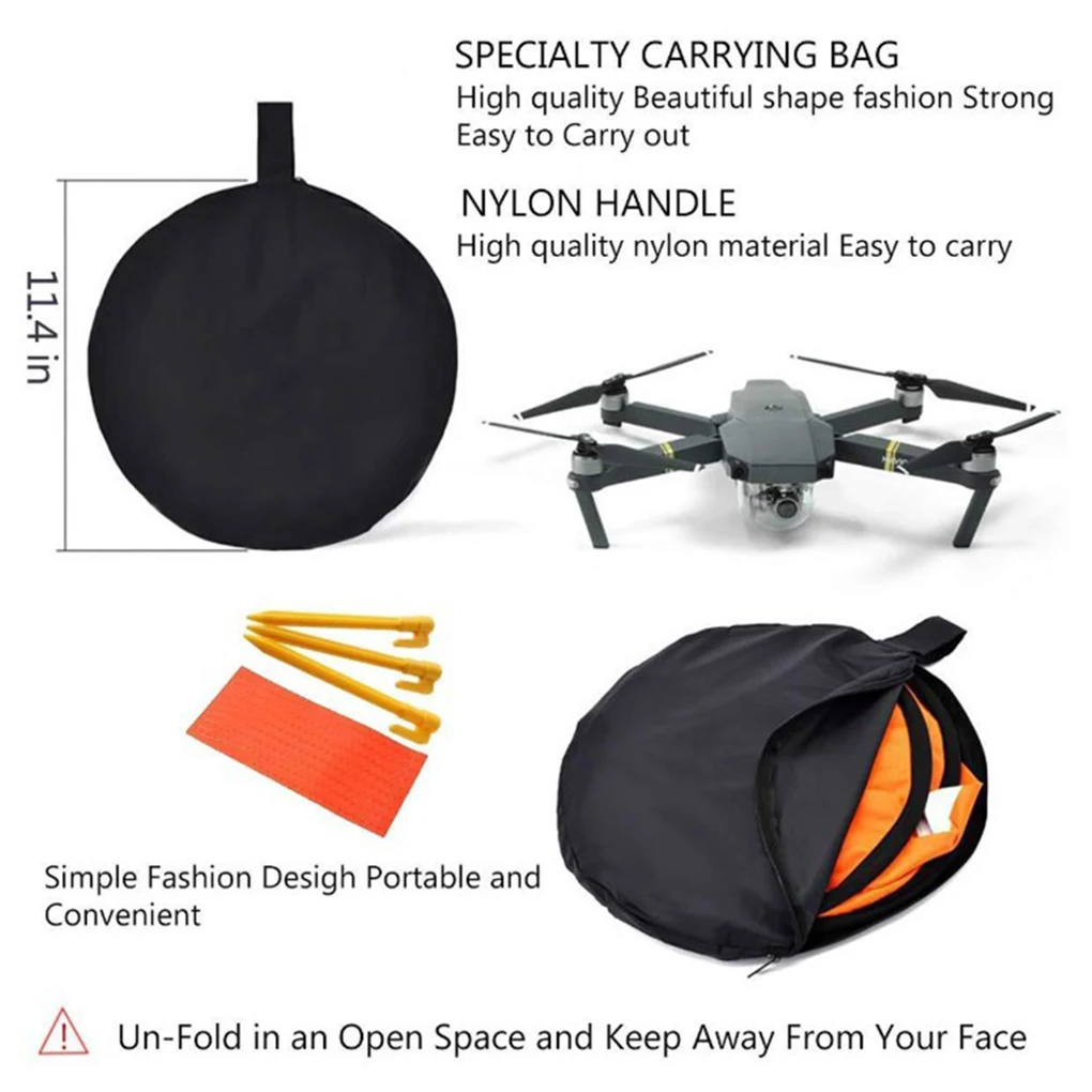 Material de alta clase: esta plataforma de aterrizaje de drones está hecha de tela de alta clase, que tiene un excelente rendimiento resistente al desgaste.Diseño plegable: La Plataforma de aterrizaje del Dron viene con una estructura plegable, lo que proporciona comodidad para el transporte y el almacenamiento.Tamaño compacto: Este helipuerto de Dron está diseñado en un tamaño compacto, lo que ahorra espacio.Mano de obra fina: El helipuerto de aterrizaje de drones disfruta de una mano de obra fina, que tiene una larga vida útil.Uso universal: Este accesorio tiene una amplia gama de aplicaciones, compatible con diferentes drones.Especificación: