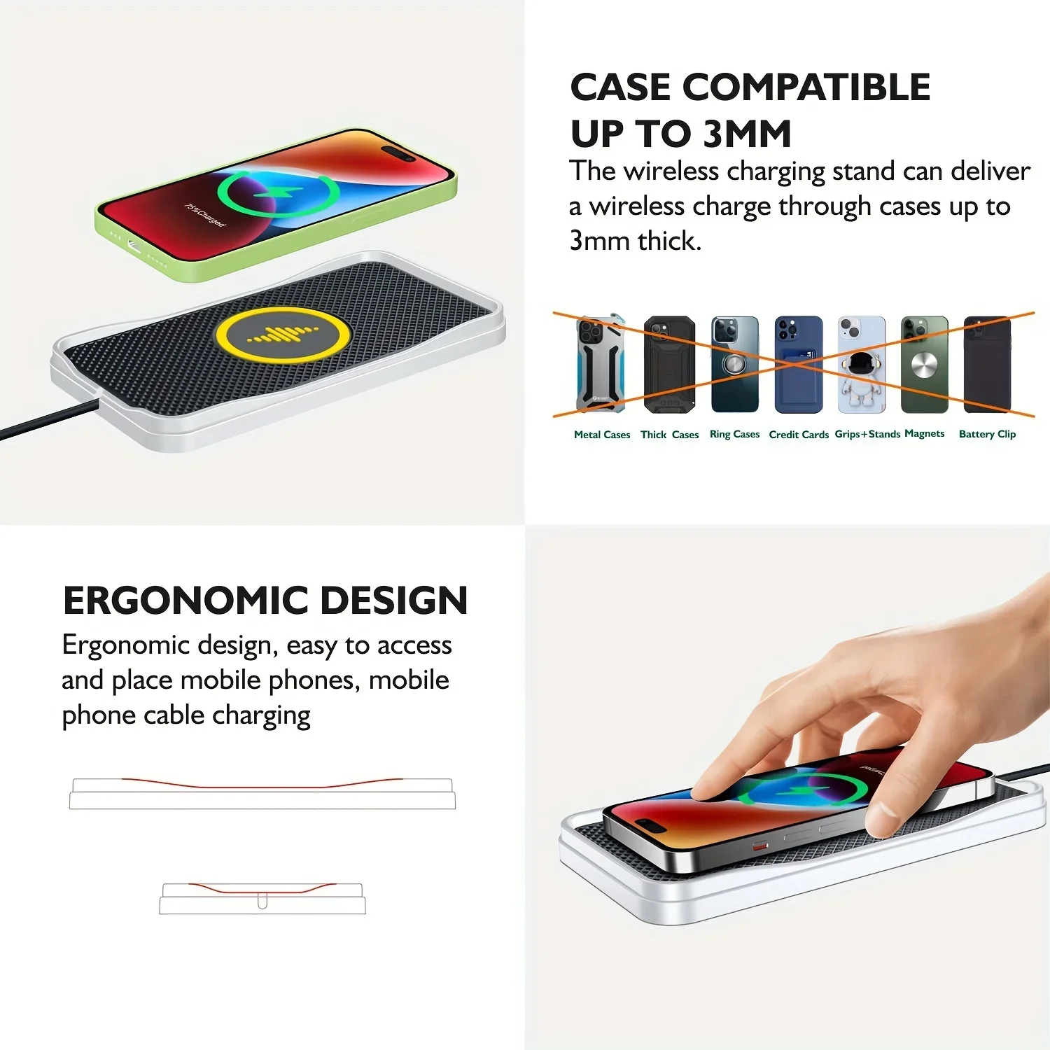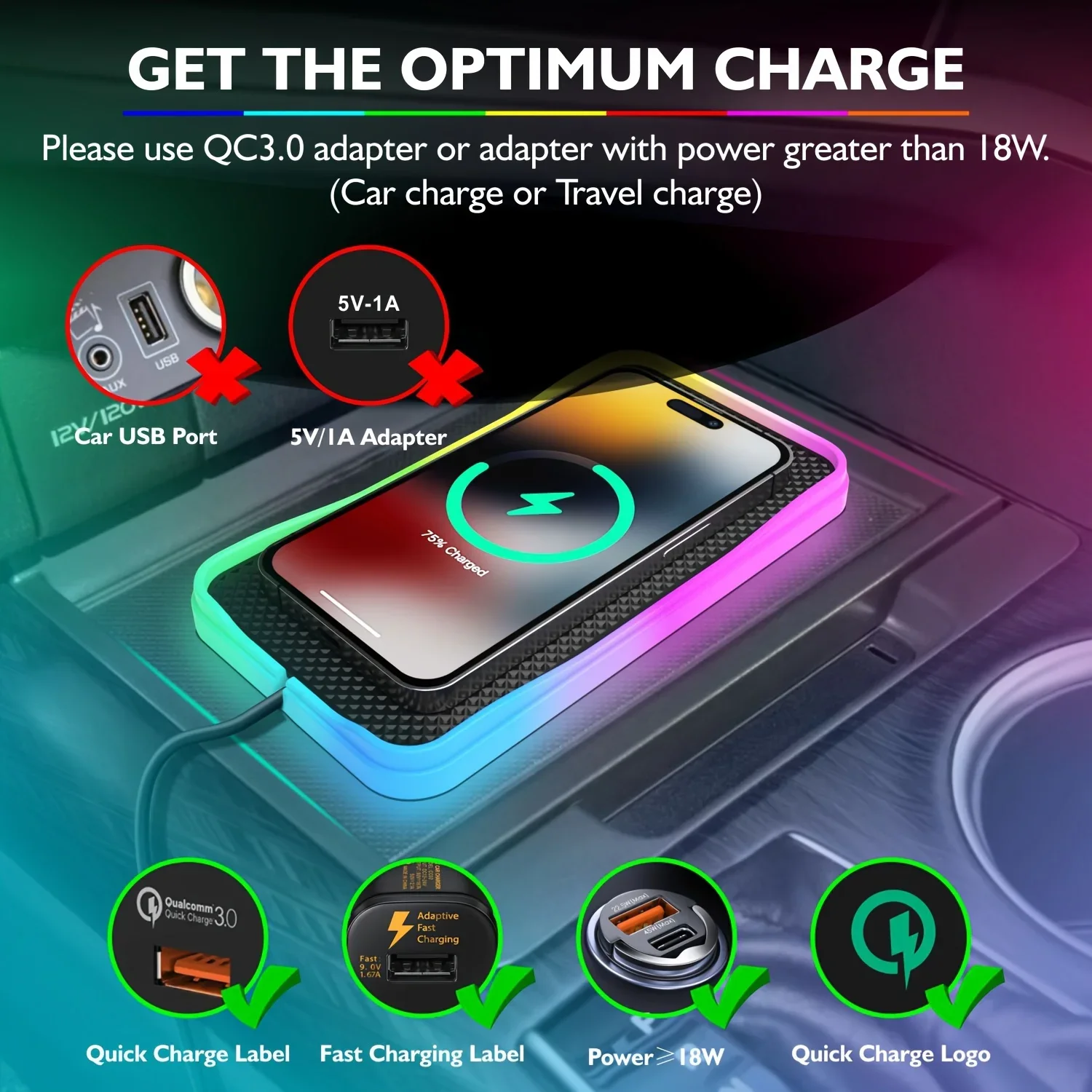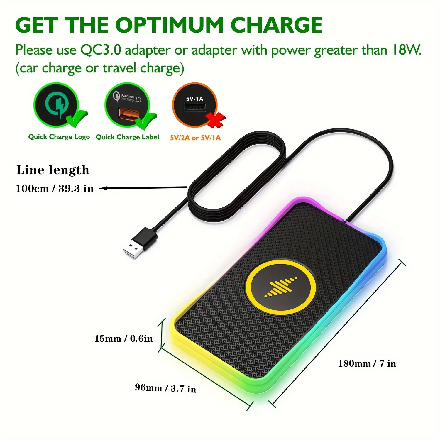 ---The wireless charging pad is made with multi-functional smart protection technology, which provides a safe charging environment with overvoltage protection, temperature control, overcurrent protection and short circuit protection; IPX5 waterproof material,Rest assured on your driving journey.