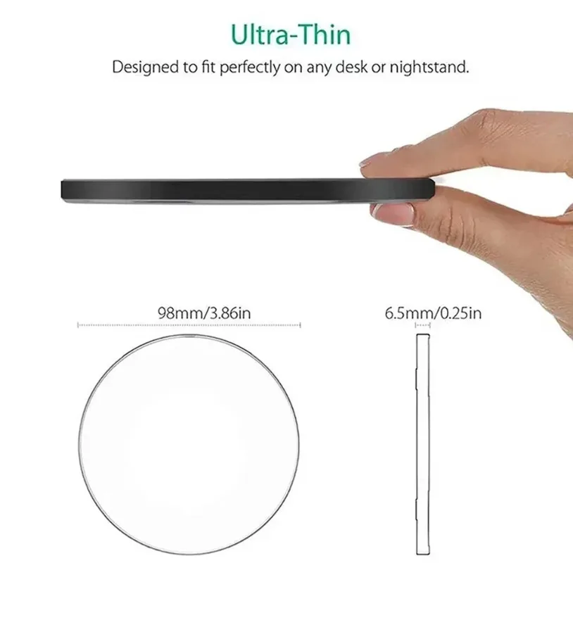 【Diseño delgado y genial】Diseño ligero, elegante y compacto con goma antideslizante.Esta plataforma de carga inalámbrica mide solo 6 mm/0.23 pulgadas súper delgado y ocupa muy poco espacio hacen que sea más fácil guardarlo en los bolsillos, una plataforma de carga inalámbrica de alta velocidad se puede transportar fácilmente durante viajes o negocios. Este cargador se siente sólido y se ve genial sin importar usarlo en la oficina en casa.