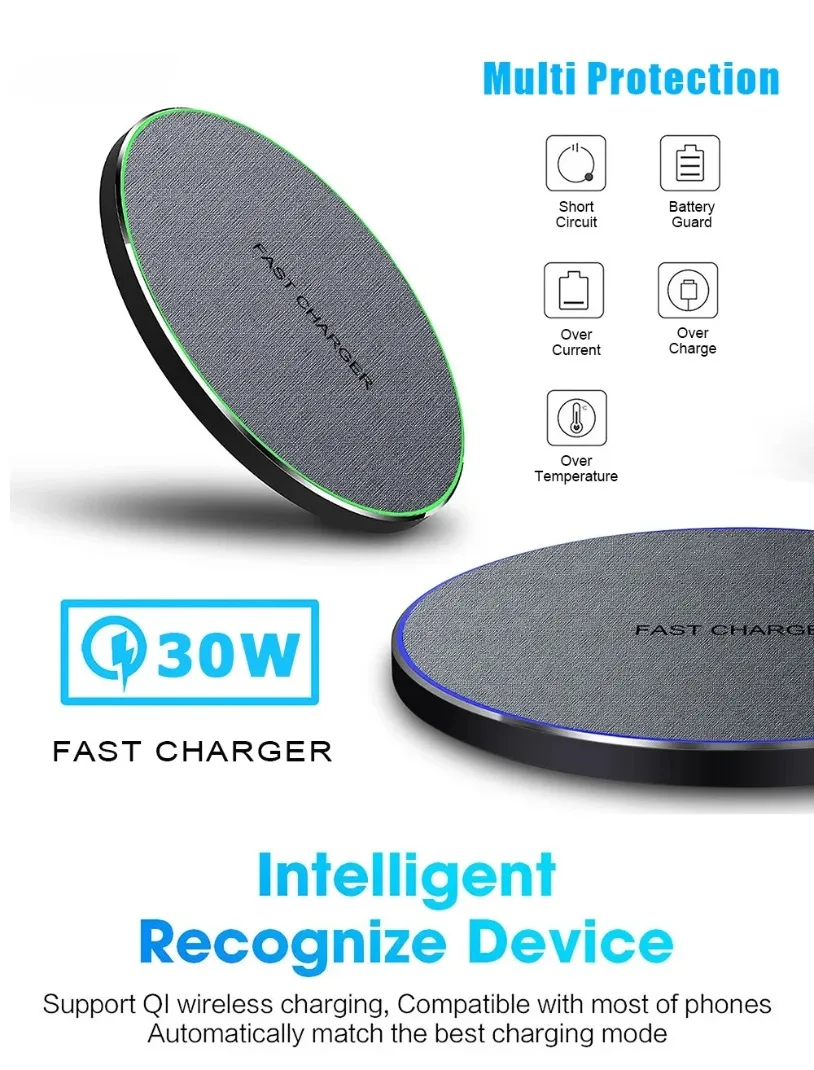 【Más seguro y fácil de usar】La exclusiva tecnología multifuncional de protección inteligente proporciona control de temperatura, protección contra sobretensiones y prevención de cortocircuitos.Además de eso, estos cargadores inalámbricos están hechos de material ABS resistente al fuego, puede comprarlos con seguridad.La doble garantía y la doble seguridad le brindan una experiencia de seguridad.Para obtener una mejor experiencia, nos gustaría que quites la funda del teléfono y utilices los adaptadores recomendados (NO INCLUIDOS).