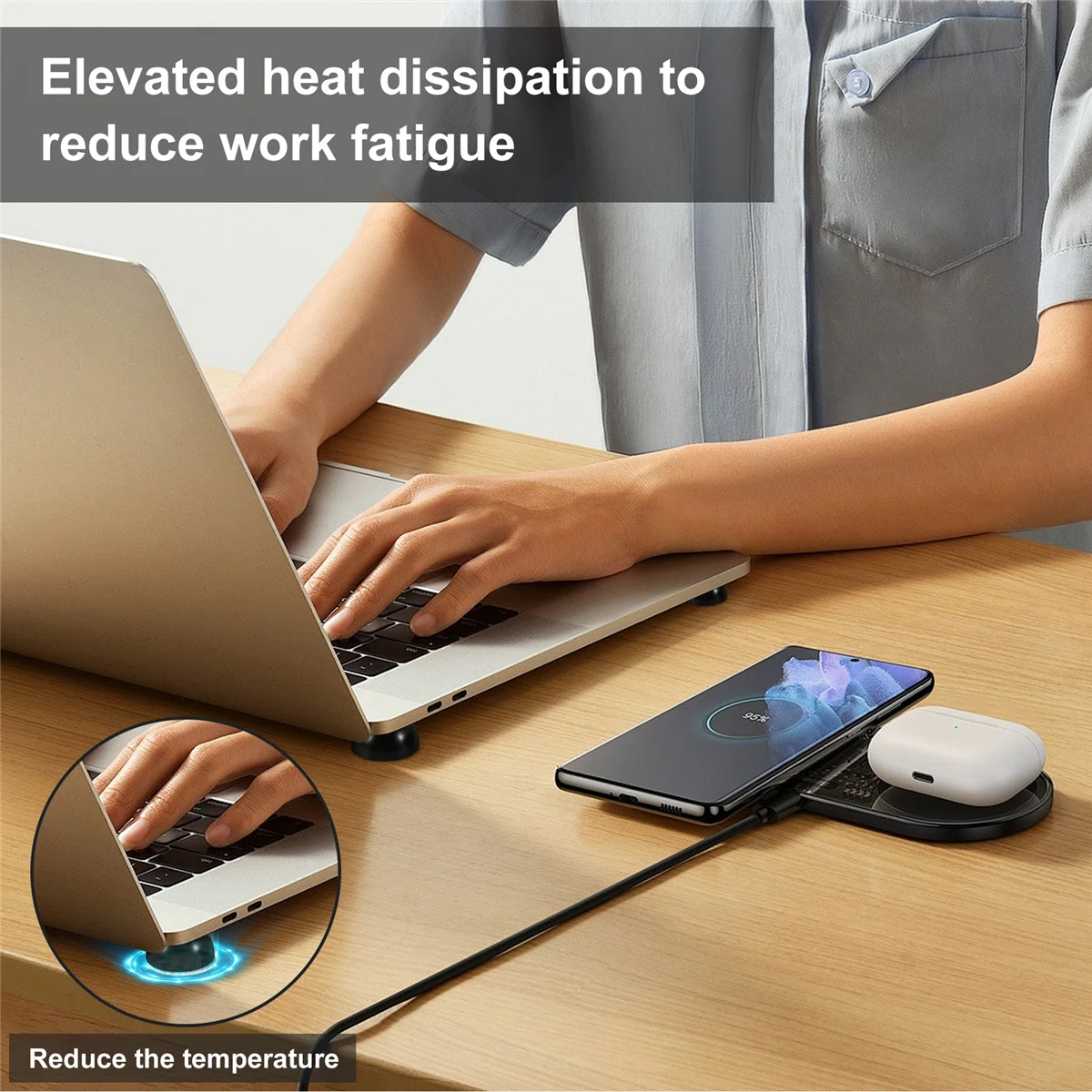 Comprar Almohadilla enfriadora antideslizante para ordenador portátil, 2 piezas, color negro