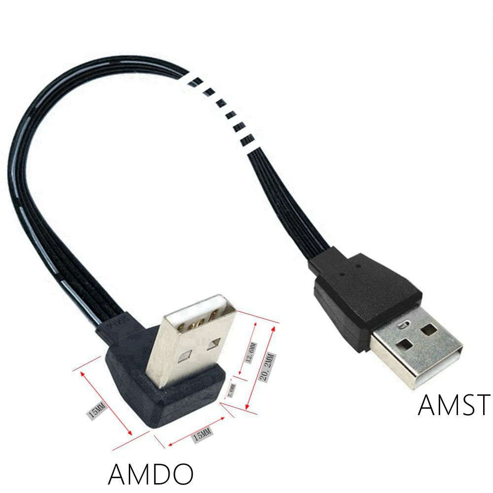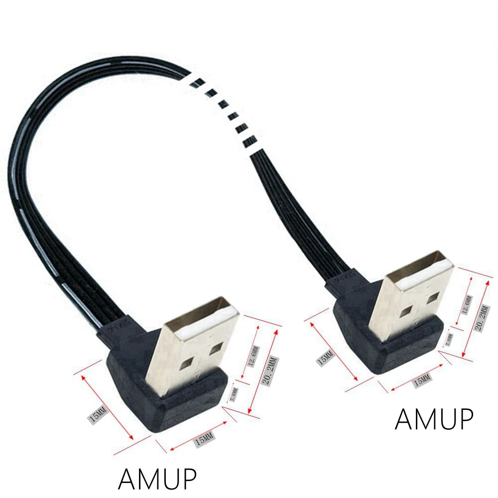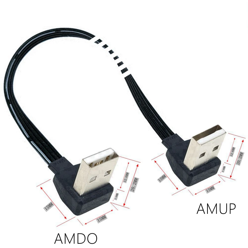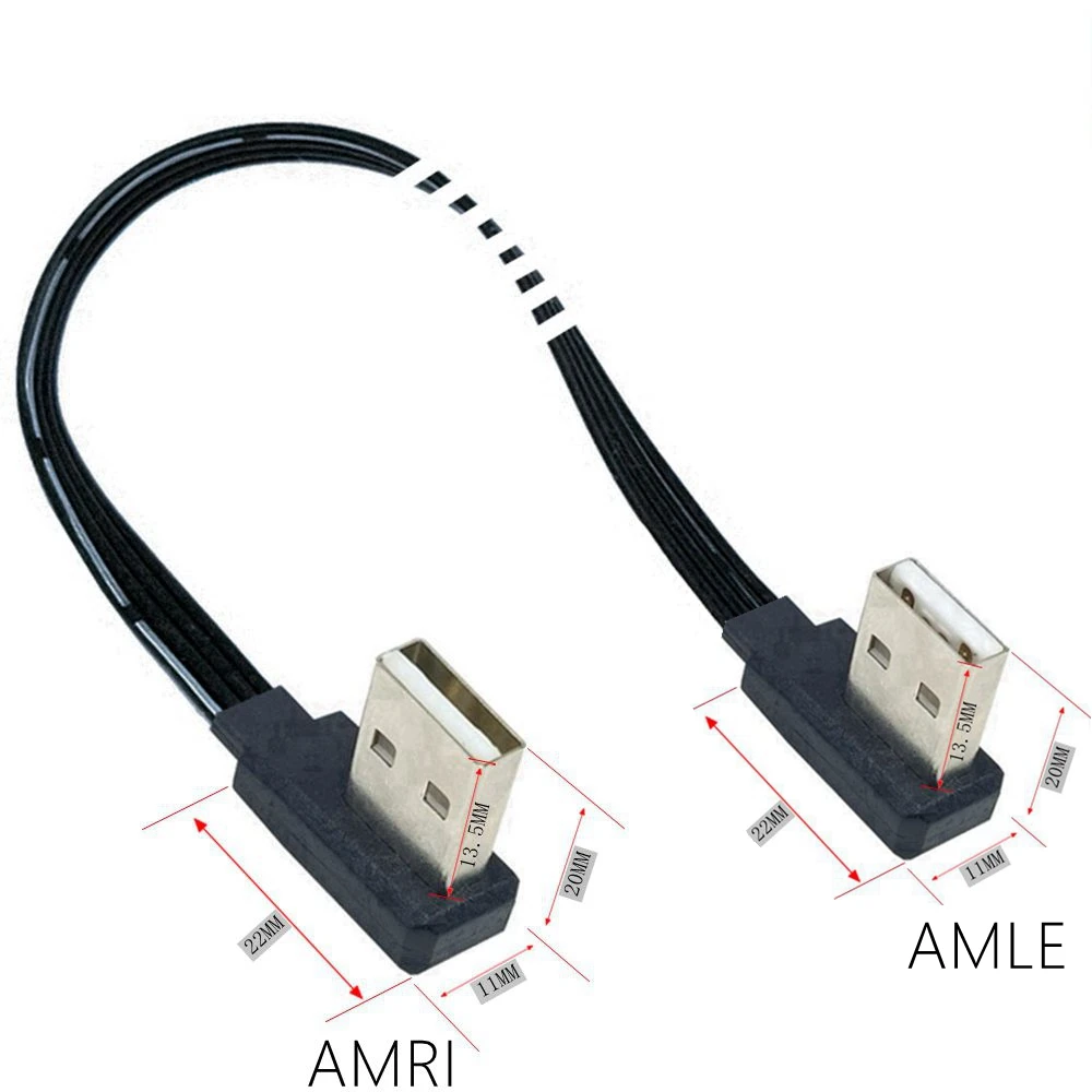 Almohadilla de enfriamiento cable de extensión USB de doble curva codo ángulo recto línea de datos USB macho a macho l corto 2,0 arriba, abajo, izquierda y derecha