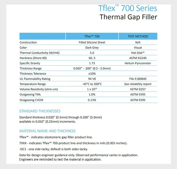 Almohadilla de grasa de silicona sólida American Laird serie T-FLEX780, almohadilla térmica