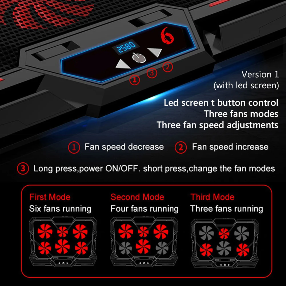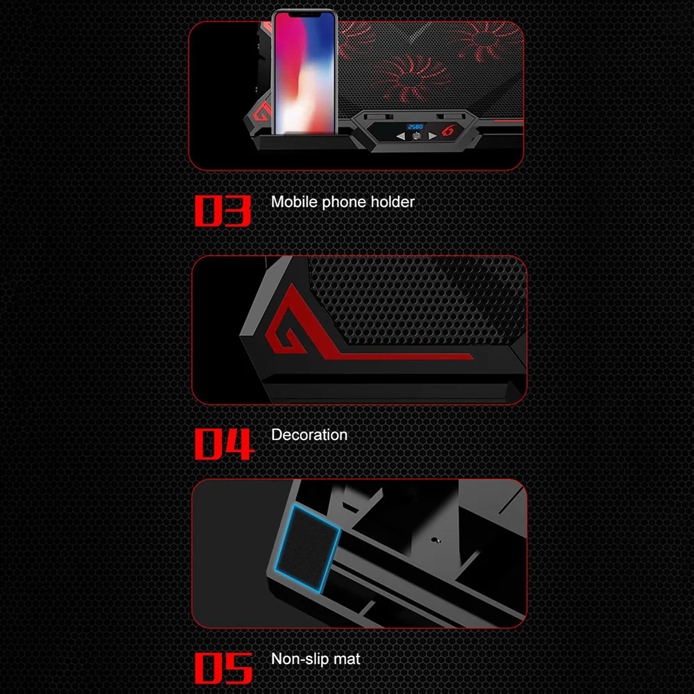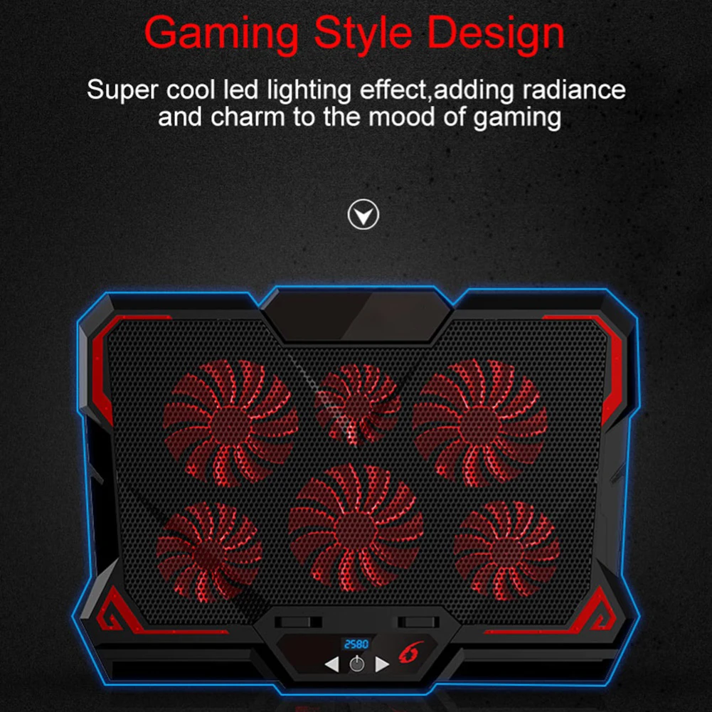 Soporte de almohadilla de refrigeración para ordenador portátil, enfriador ajustable con 2 puertos USB y 6 ventiladores