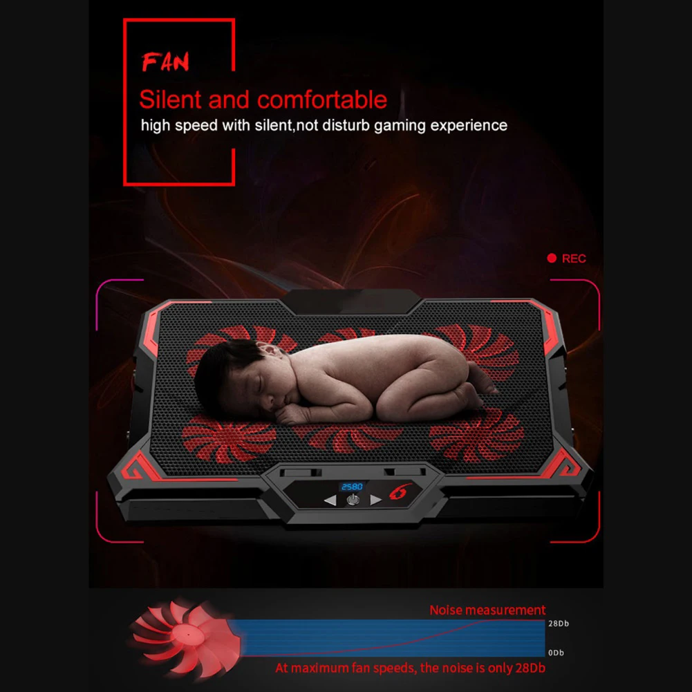 Diseñado para uso en juegos, Esta almohadilla de refrigeración para ordenadores portátiles puede admitir ordenadores portátiles de hasta 17 pulgadas o menos.