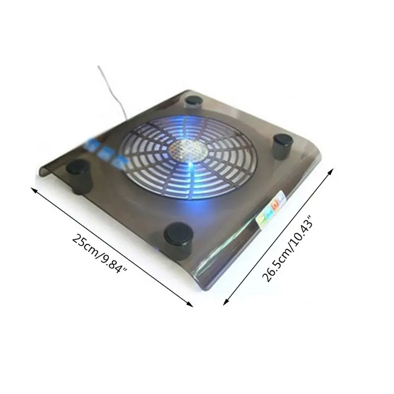 Enfriador de computadora portátil para PC Notebook de 15 "Ventilador grande de enfriamiento USB Soporte de almohadilla de enfriamiento de luz LED azulDescripción:Nuevo, alta calidadCaracterísticas:Cristal transparente, diseño aerodinámico, MUY NOBLE, súper gigante, ventilador súper silencioso, tenga cuidado con su propio frío;Hecho de material acrílico con alta resistencia al calor y disipación del calor; un gran ventilador solo, fresco, muy fresco de usar, muy popular entre amigos;Cuatro pies redondos transparentes, ¡Genial! Ideal para 15 pulgadas y menos;La almohadilla de enfriamiento proporciona una almohadilla de goma redonda con un alto coeficiente de fricción para garantizar que el portátil sea estable y no se resbale fácilmente.Las esquinas del panel del radiador están finamente procesadas y no rayarán el portátil.¡El ajuste razonable de la pendiente le hace más cómodo al usar el libro! Soplando calor directamente a la parte inferior del portátil, forzando el calor del portátil a soplar e introduciendo aire frío para aumentar el flujo de aire en la parte inferior del portátil, para que los elementos calefactores dentro del portátil se enfríen, manteniendo eficazmente el entorno de trabajo interno de baja temperatura.Especificaciones:Tipo de artículo: Laptop CoolerFuente de alimentación: USBMaterial: plásticoTamaño: aprox. 335x288x40mm/13.19x13.34x1.57inColor: entrega aleatoria (si compra más de uno, los colores que recibirá serán iguales o diferentes).Cantidad: PcNota:Transición: 1cm=10Mm=0,39 pulgadas.Permita un error de 0-1cm debido a la medición manual. Por favor, asegúrese de que no le importe antes de pujar.Debido a la diferencia entre monitores, es posible que la imagen no refleje el color real del producto. ¡Gracias!El paquete incluye1 refrigerador para portátil (otros accesorios no están incluidos en la imagen de demostración).