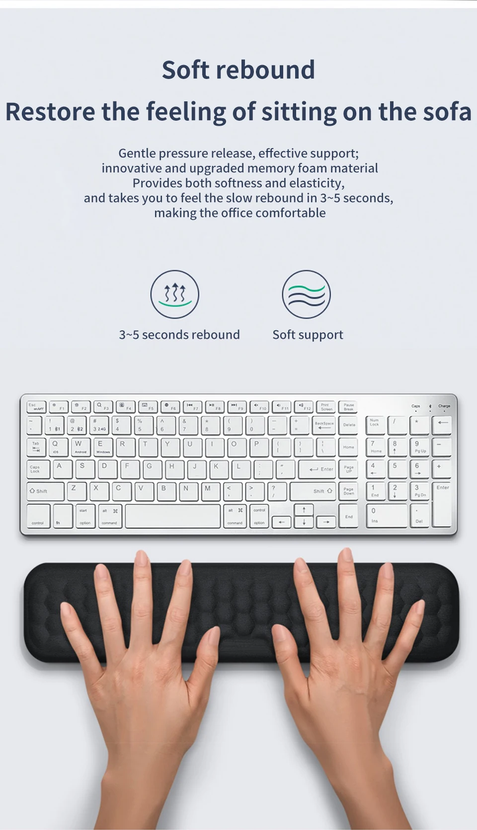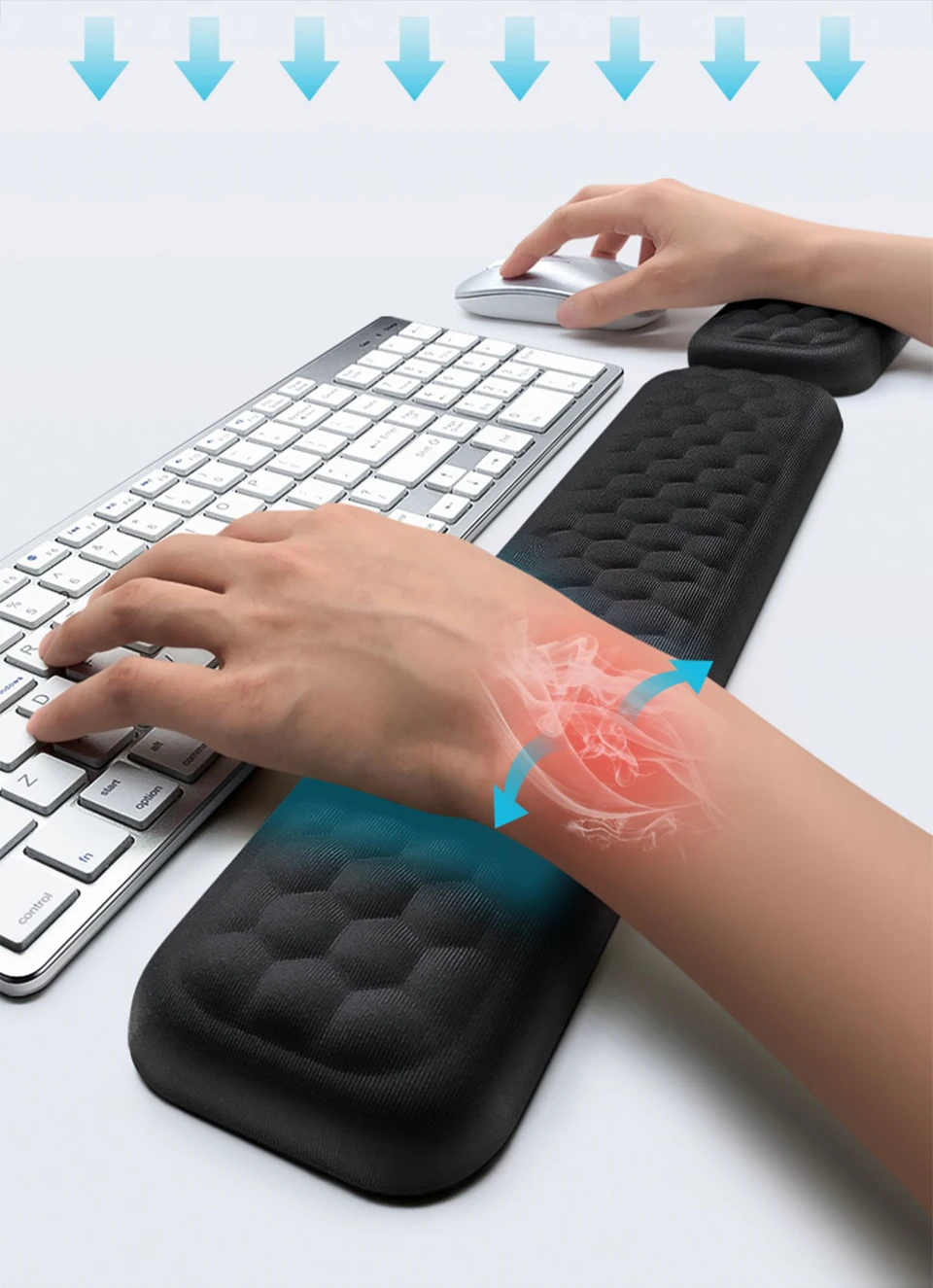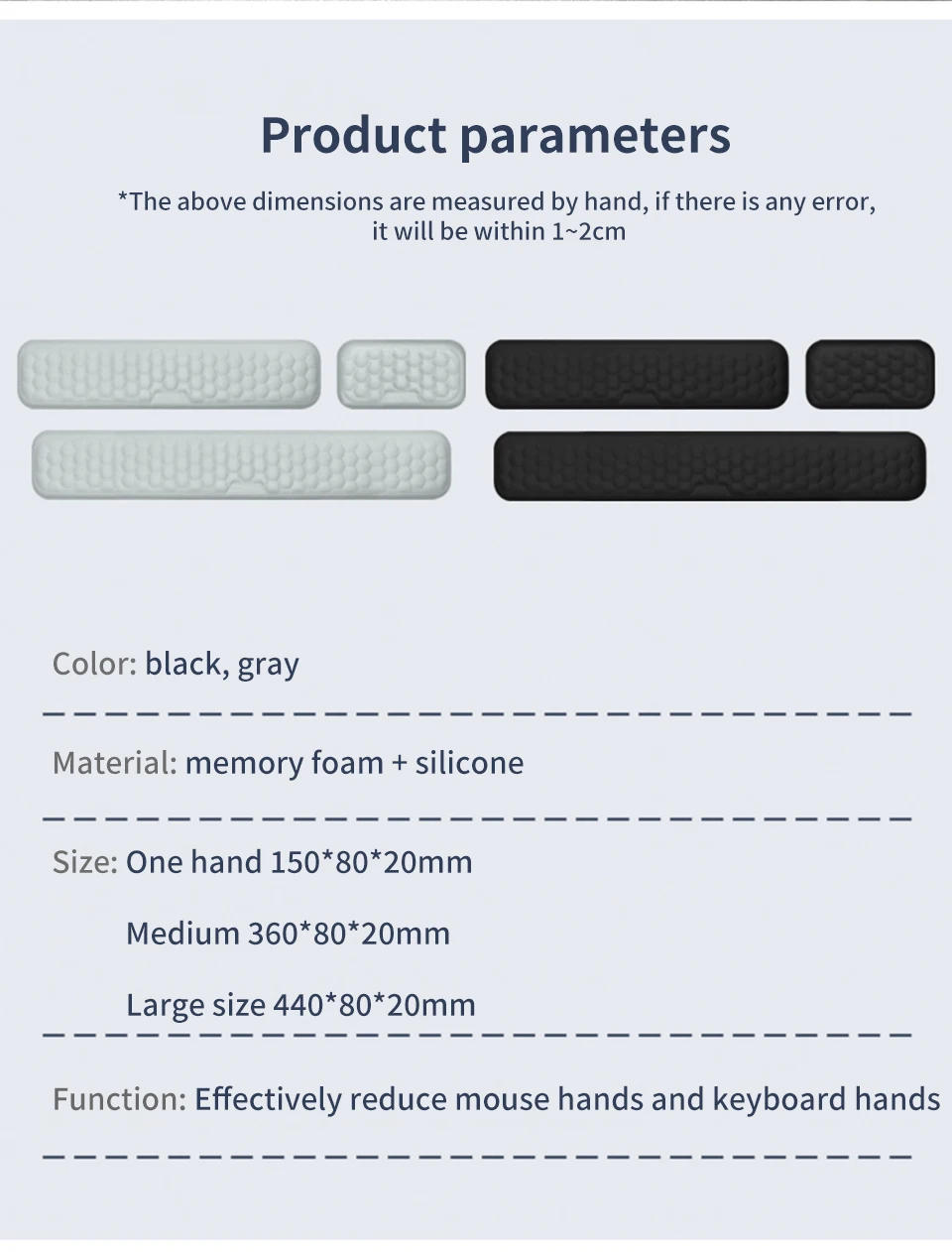La superficie del reposamuñecas tiene textura de silicona, la parte inferior es antideslizante de PU, relleno de espuma viscoelástica