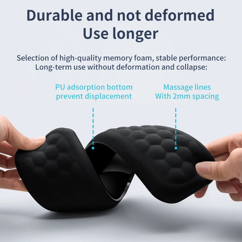 La superficie del reposamuñecas tiene textura de silicona, la parte inferior es antideslizante de PU, relleno de espuma viscoelástica