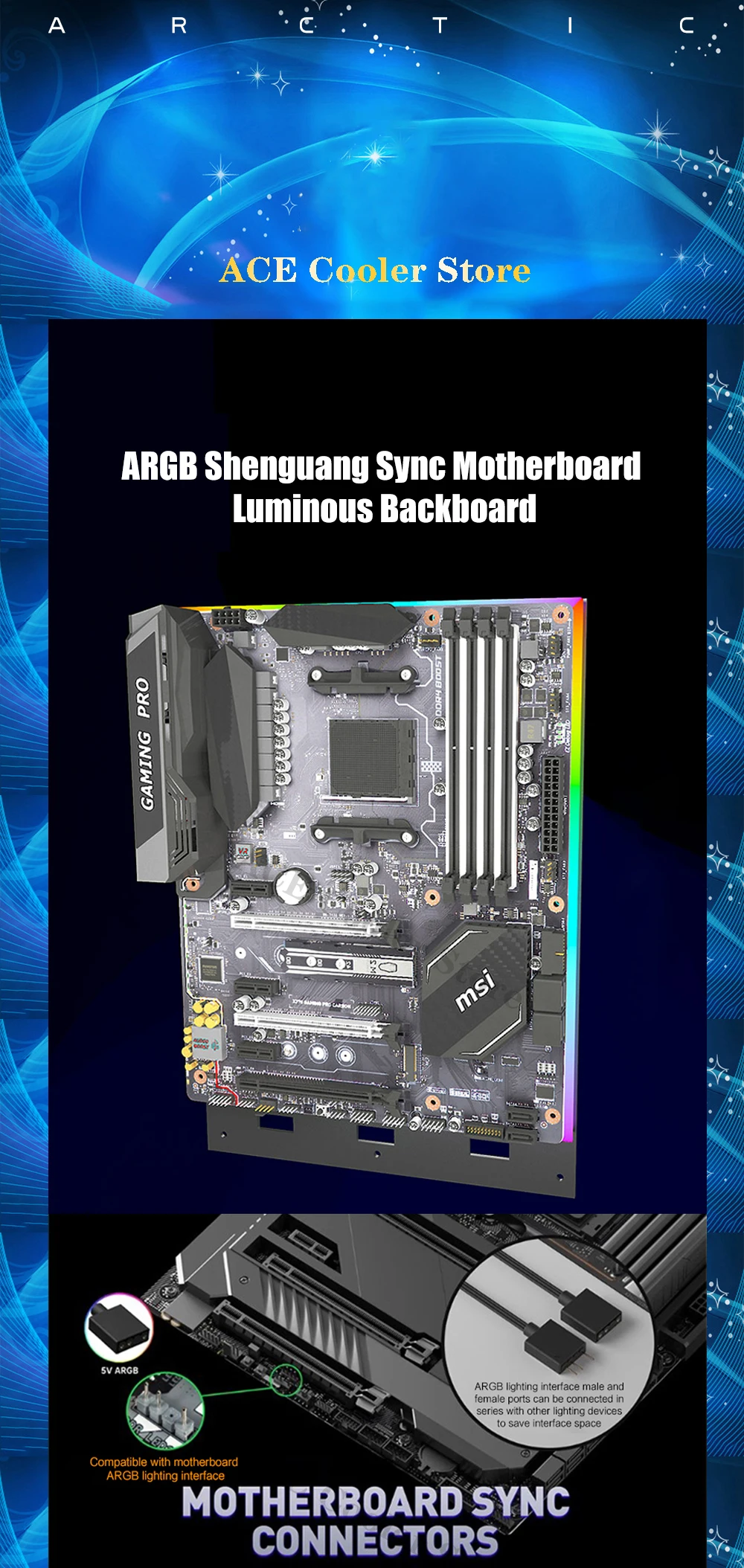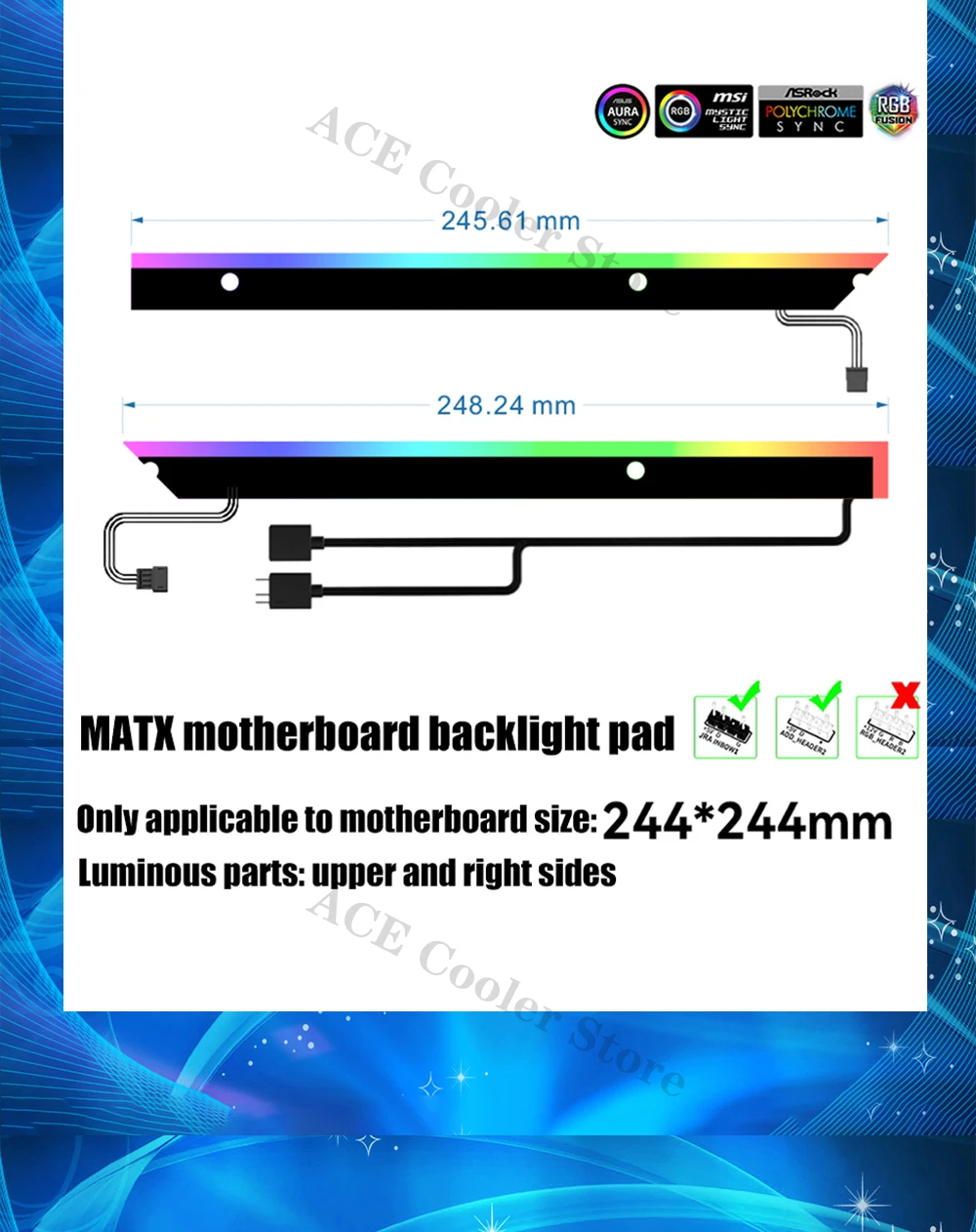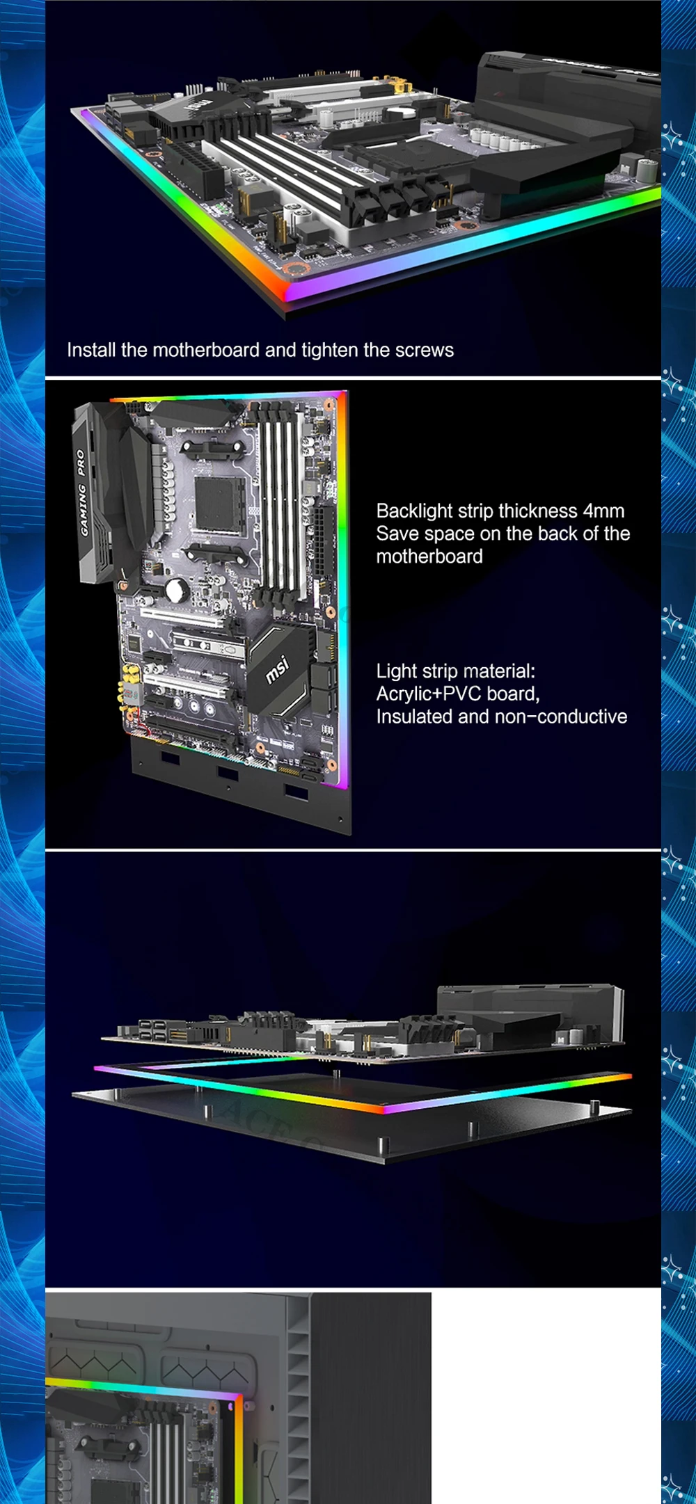 Almohadilla de retroiluminación luminosa para ordenador M/B, placa trasera 5V 3 pines ARGB tira de luz divina para placa base ATX/MATX MOD parte