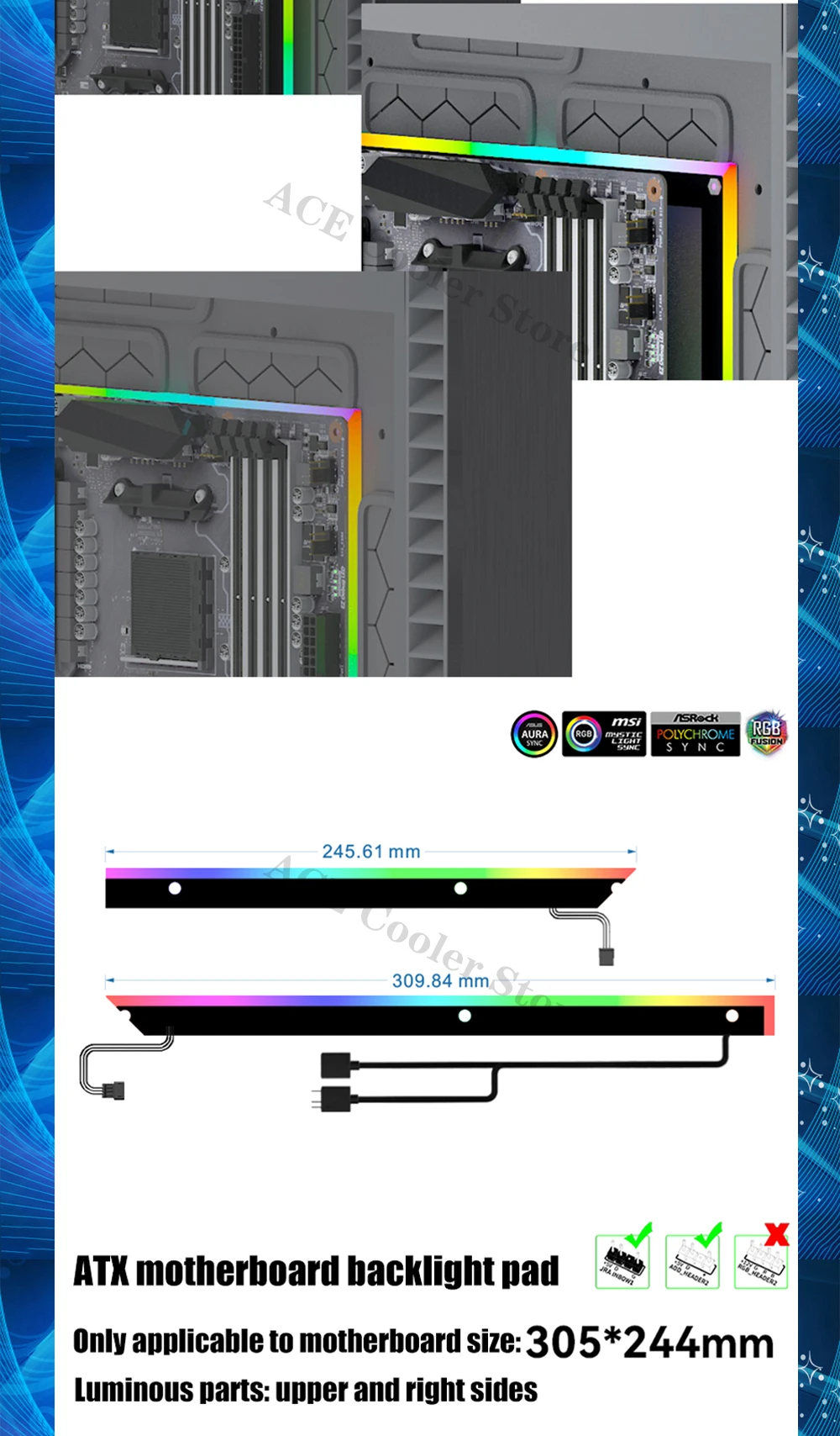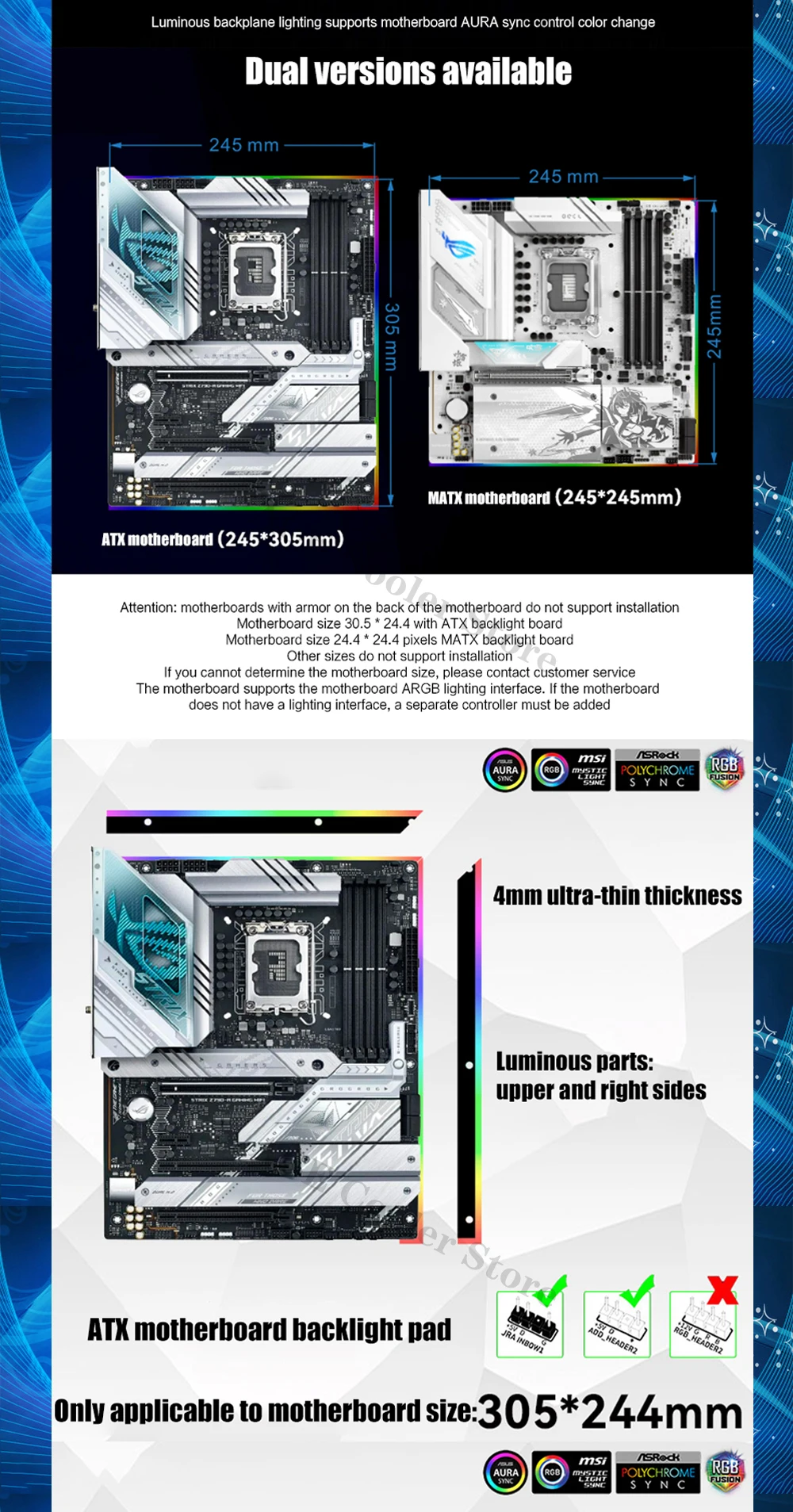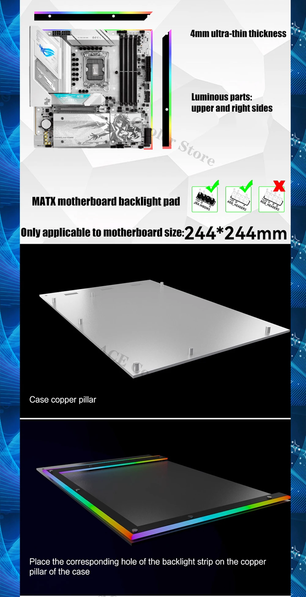 Almohadilla de retroiluminación luminosa para ordenador M/B, placa trasera 5V 3 pines ARGB tira de luz divina para placa base ATX/MATX MOD parte