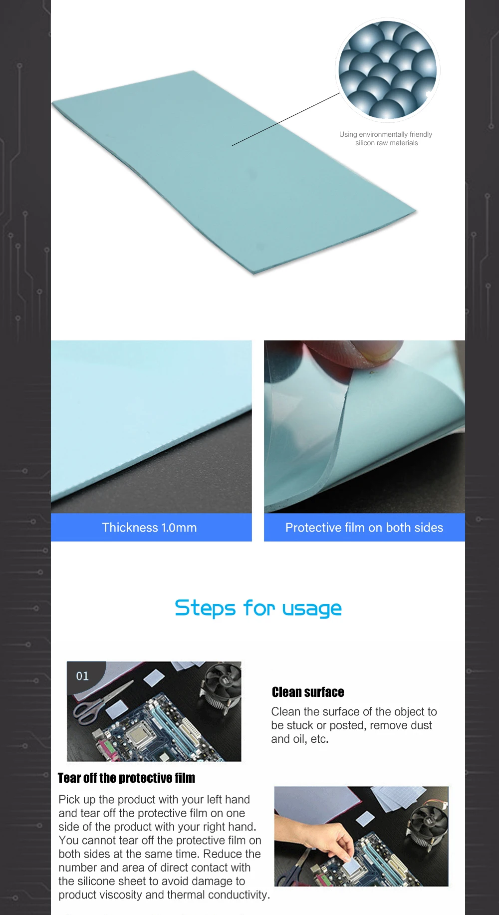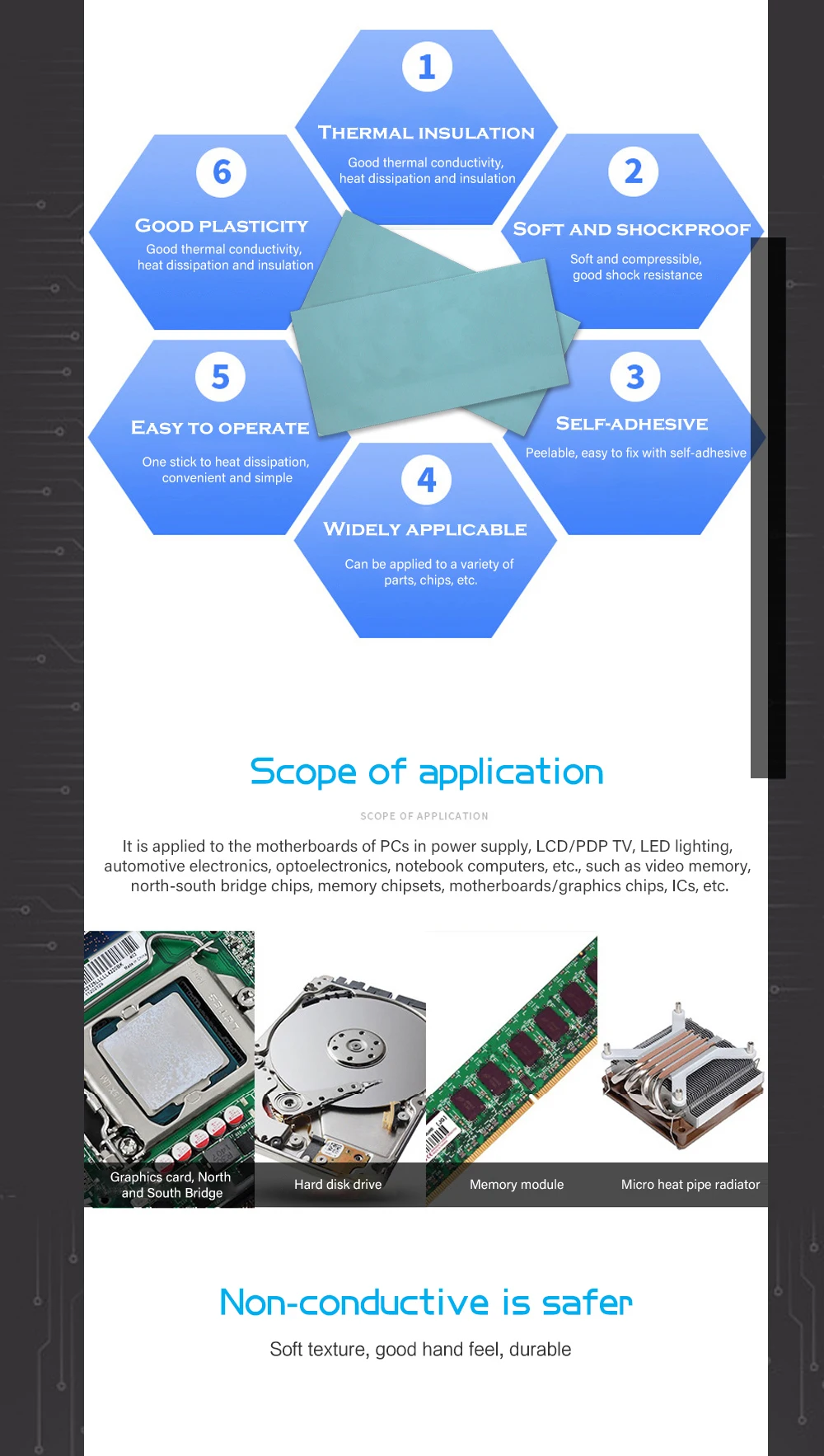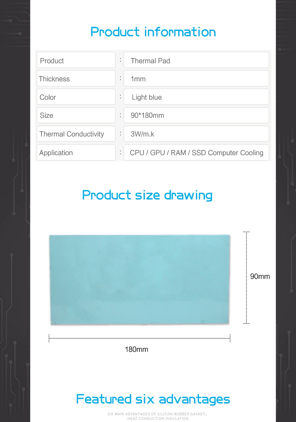 Almohadilla térmica 3 W/m.k 180x90x1mm para tarjeta gráfica, radiador de placa trasera, enfriador dedicado usado para CPU / GPU / RAM/SSD, refrigeración de ordenador