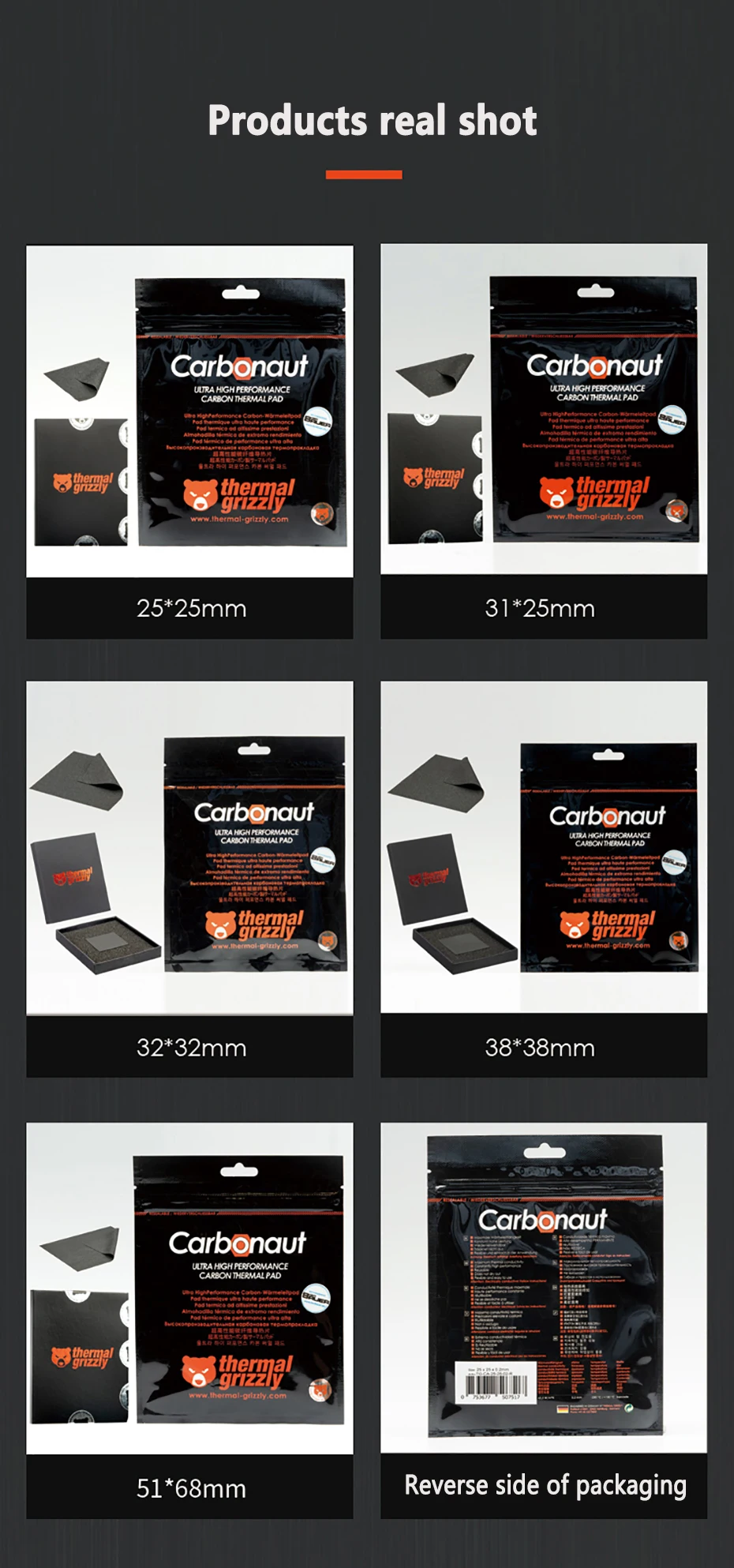 Almohadilla térmica de carbono Grizzly, almohadilla térmica de carbono de 0,2mm, no adhesiva, Flexible, reutilizable, CPU/GPU/PS4/placa base, almohadilla térmica de silicona