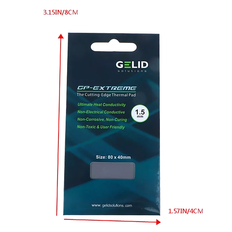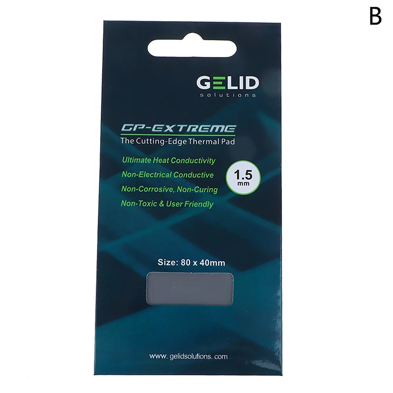 El GP-Ultimate no es conductor eléctrico, no es corrosivo, No endurece, no es tóxico y admite un rango de temperatura de funcionamiento extendido de-60 °C a 220 °C. Cuenta con una fácil aplicación y tiene las dimensiones de la almohadilla térmica de 90x50mm para adaptarse mejor a grandes superficies de PCB de tarjetas GPU, placas base, tarjetas adicionales y cualquier otro dispositivo electrónico densamente empaquetado.