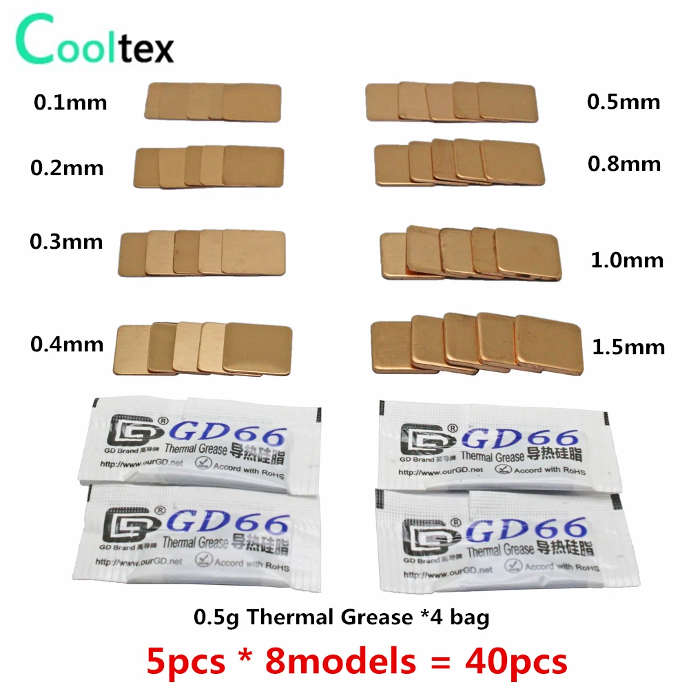 Comprar Almohadilla térmica para disipador de calor de cobre, placa de refrigeración para ordenador portátil, GPU, CPU, Chip VGA, RAM, 8 modelos, 15mm x 15mm, 40 unidades