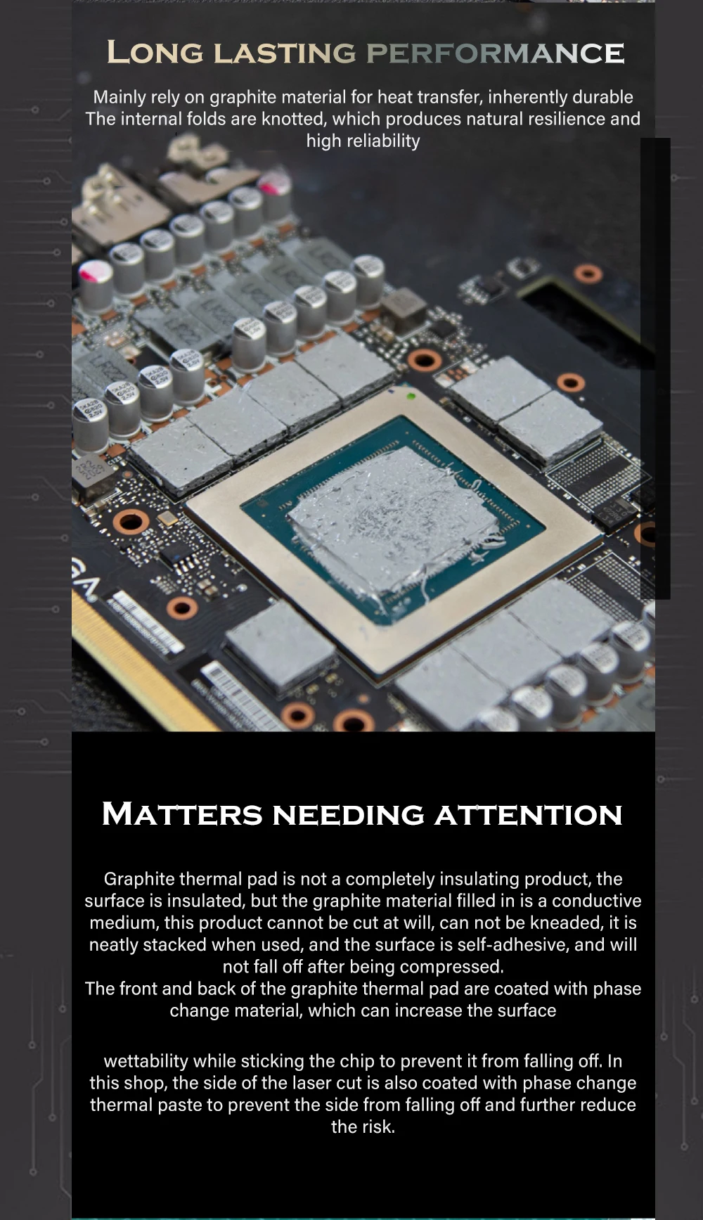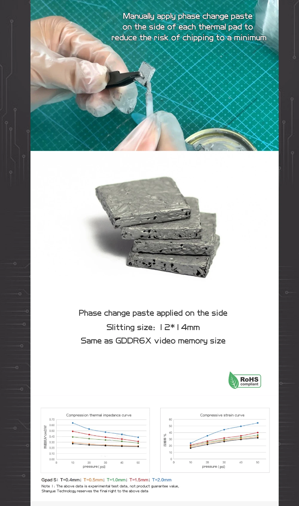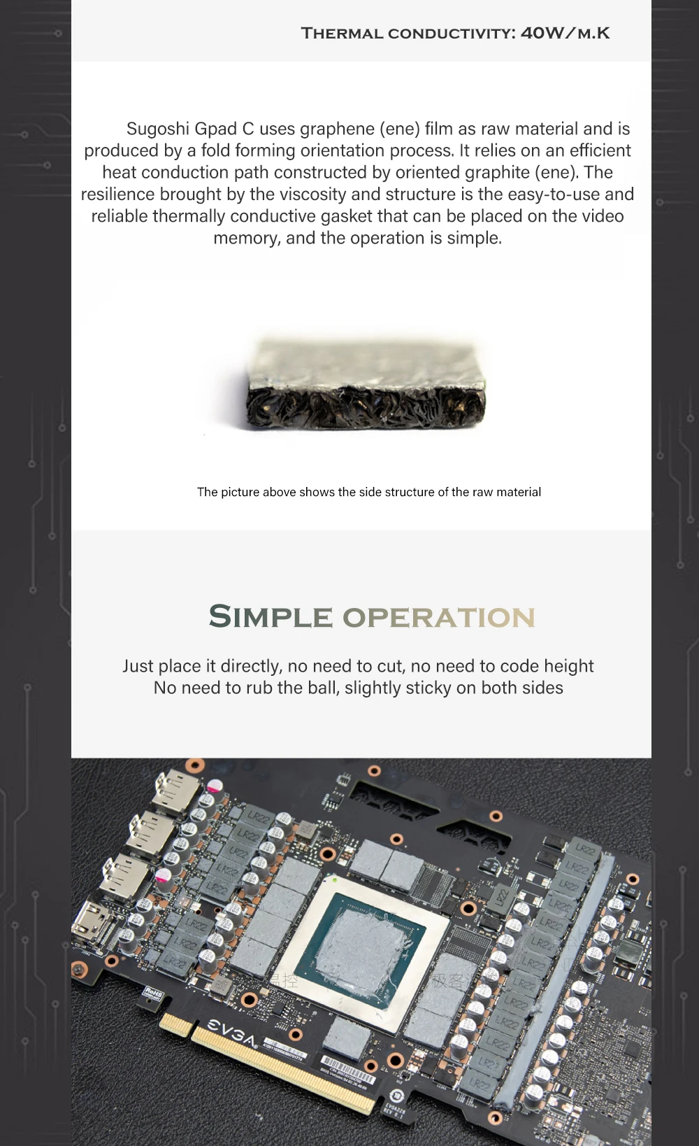Comprar Almohadilla térmica de grafito GK7-3D 40 W/m.k para tarjeta de vídeo 3070/3090/3080, almohadilla de Grasa de silicona térmica con memoria, 12x14mm