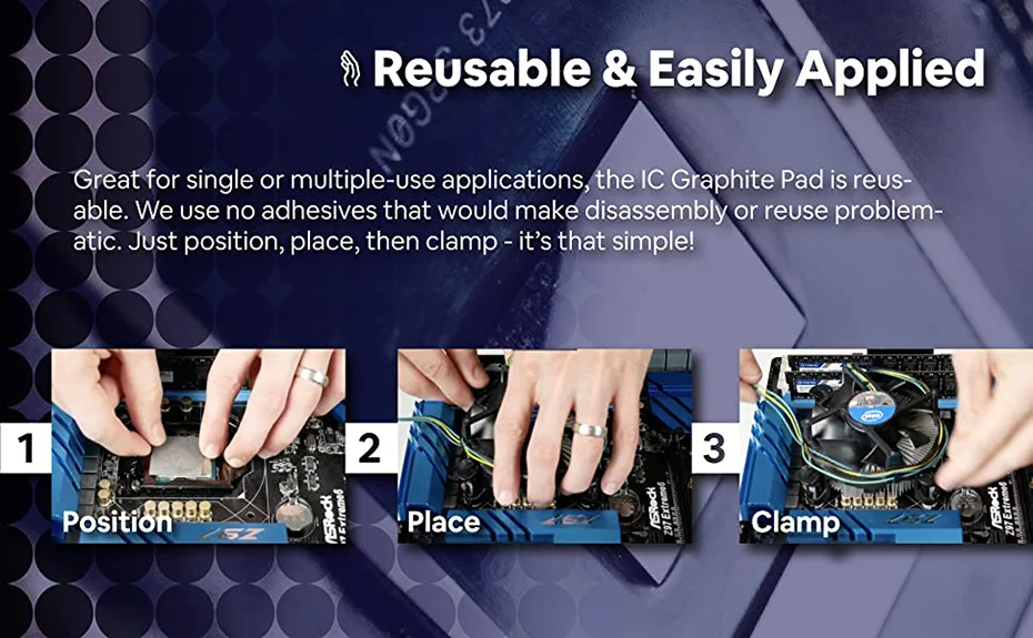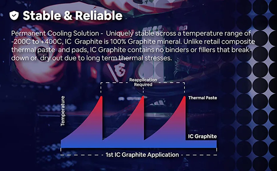 •REUSABLE – You’ll never have to worry about buying thermal paste ever again. The graphite thermal pad can be reused on multiple builds with no loss in performance.