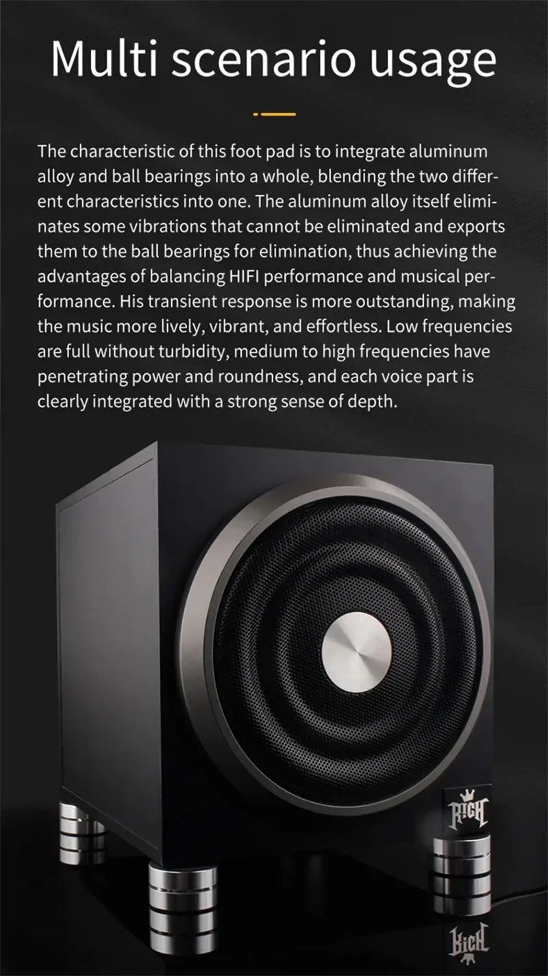 - 1.Absorción de impactos de bola de acero Almohadilla de pie de absorción de impactos del altavoz Más que la absorción de impactos dura más potente.