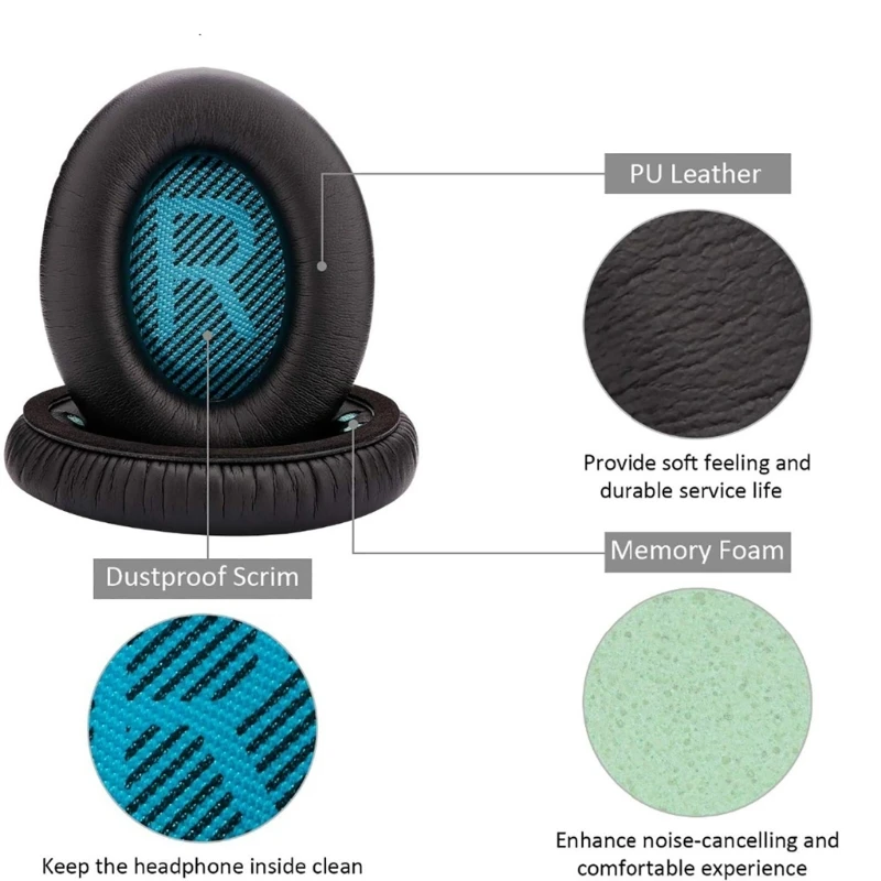Características:Experimenta la comodidad y el aislamiento del ruido con estas almohadillas de repuesto para auriculares QC35, QC15 y QC25.