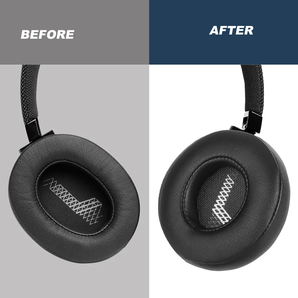 Almohadillas de repuesto para los oídos, orejeras de cuero de proteína suave, almohadillas para los oídos, cubierta de espuma viscoelástica, piezas de reparación compatibles con auriculares inalámbricos en la oreja JBL Live 400BT