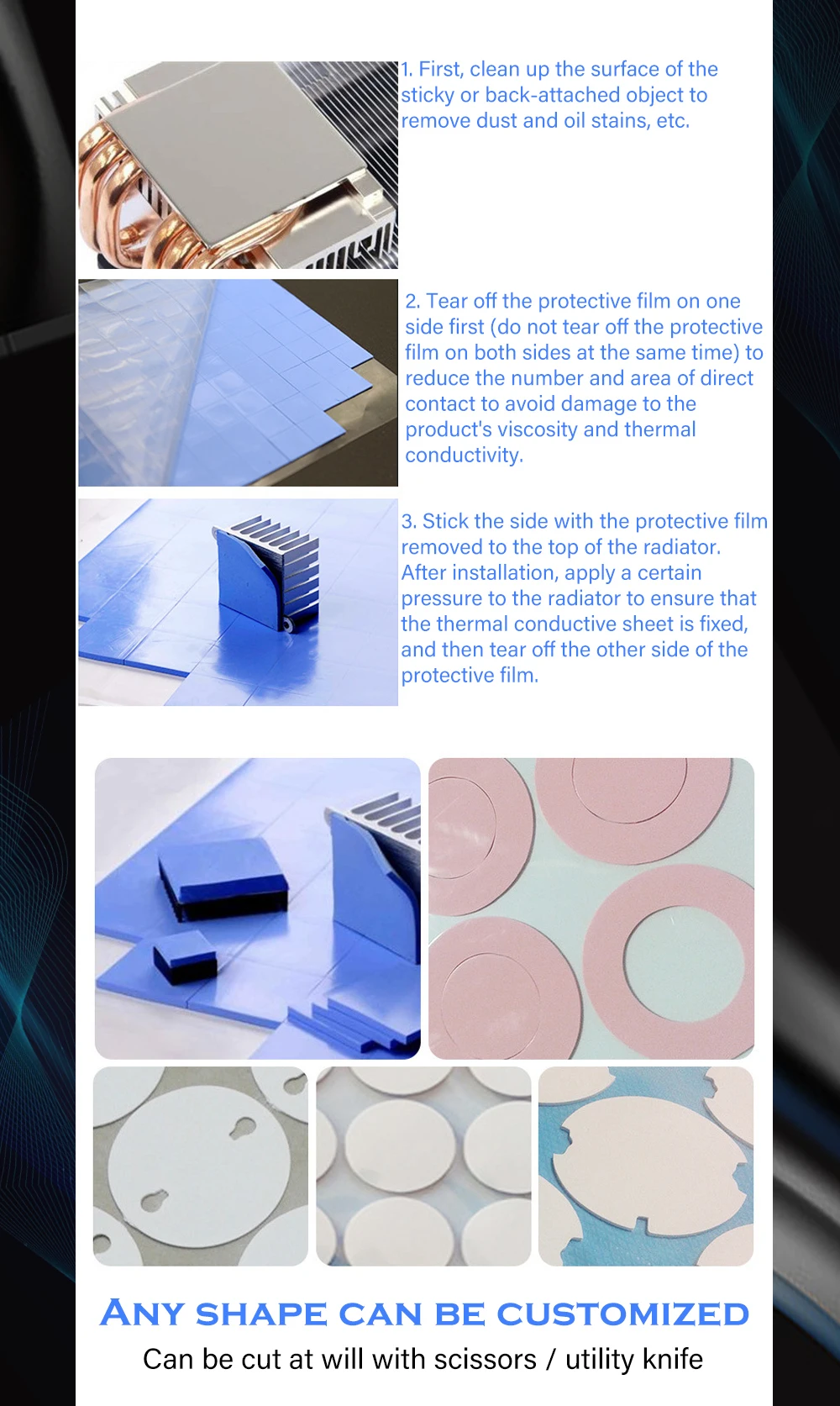 Almohadillas de silicona de disipación de calor de alta conductividad para CPU/GPU/VRAM/SSD, tarjeta gráfica, pasta térmica, 12 W/m disipador de calor. k, 0,5-3 nm