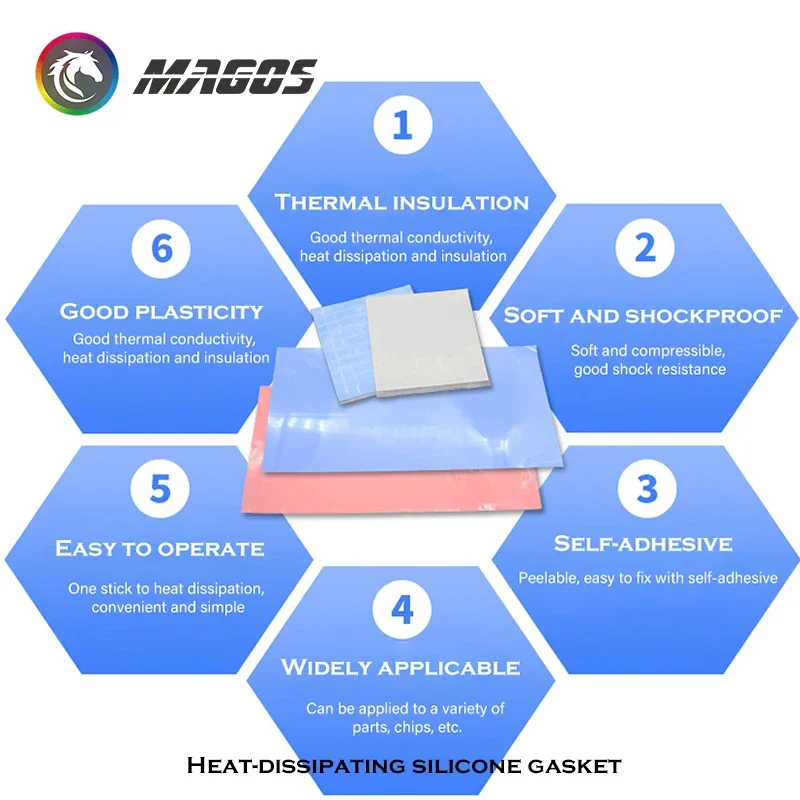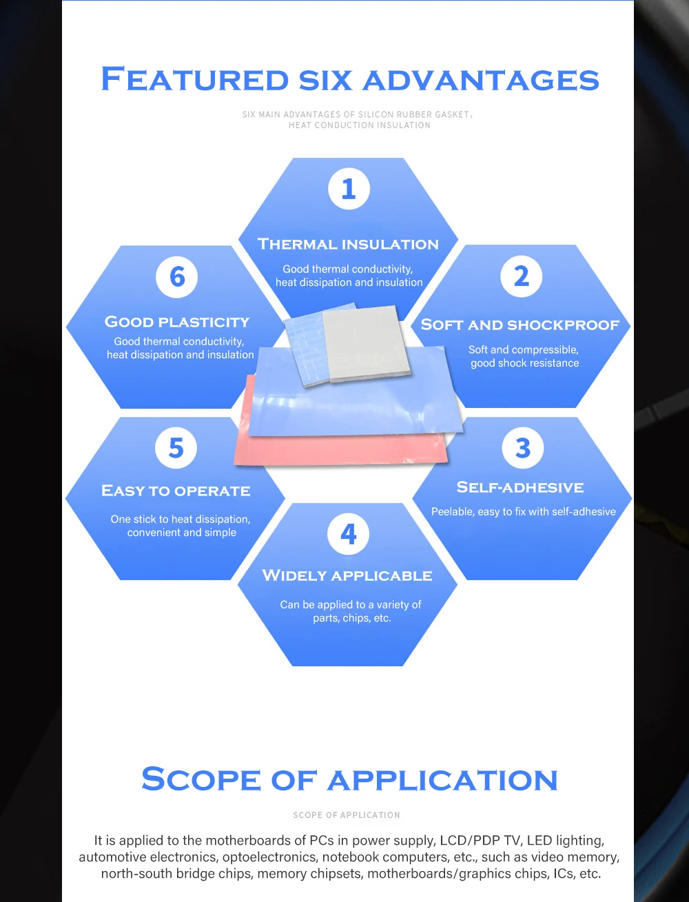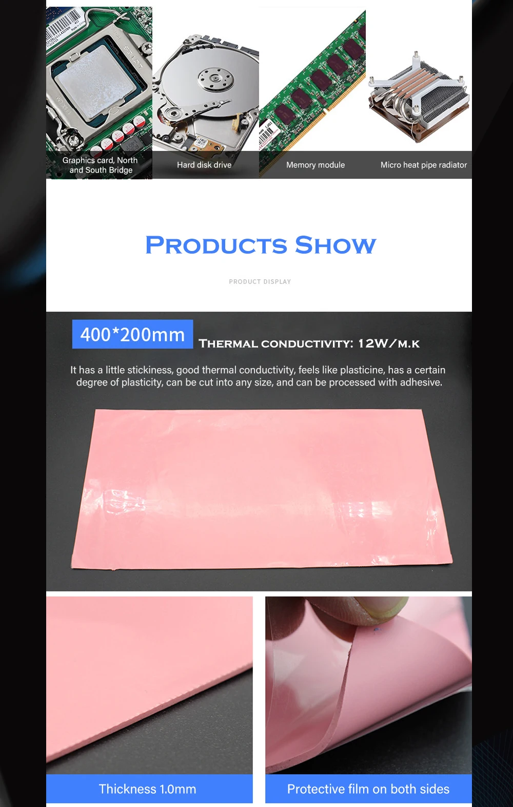 Comprar Almohadillas de silicona de disipación de calor de alta conductividad para CPU/GPU/VRAM/SSD, tarjeta gráfica, pasta térmica, 12 W/m disipador de calor. k, 0,5-3 nm