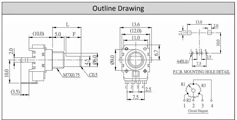 Alpha Boss-potenciómetro GT10, 10 piezas, efecto de volumen 0B2.5 K, 4 pines, rotación Vertical de 360 grados, 15mm, longitud del mango del medio eje