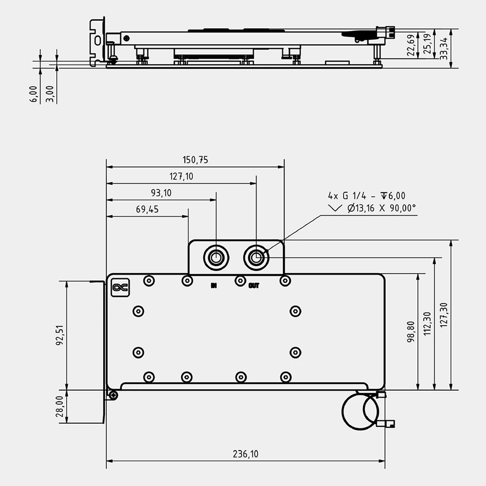 Dimensiones totales (largo x ancho x alto): 236,10 x 127,30 x 33,34 mm