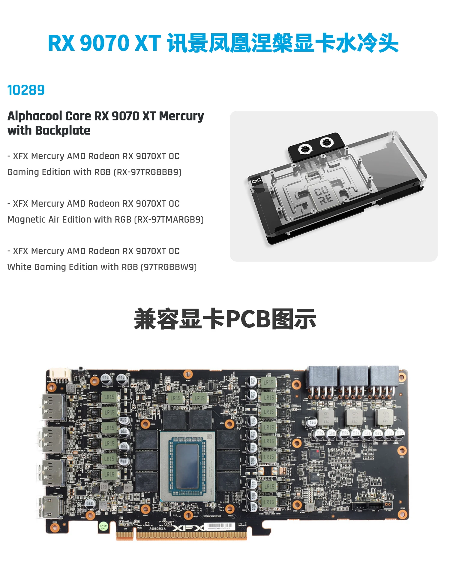 Comprar Alphacool Core Water Block Serve para XFX Mercury AMD Radeon RX 9070XT OC Gaming, enfriador de tarjeta gráfica de aire magnético con placa posterior