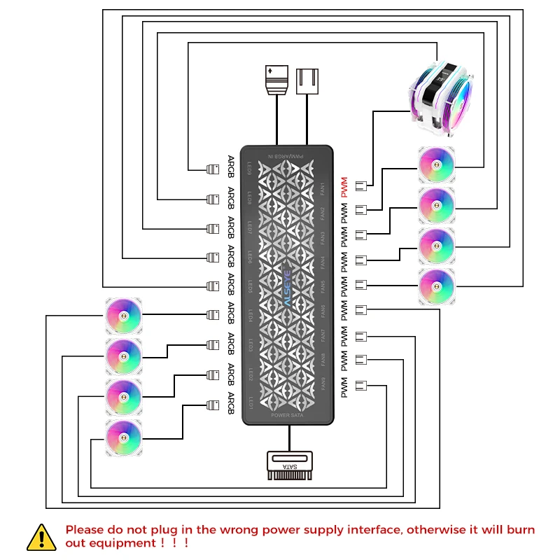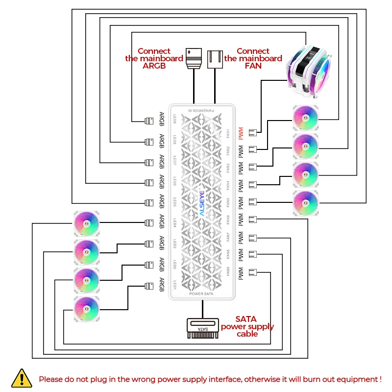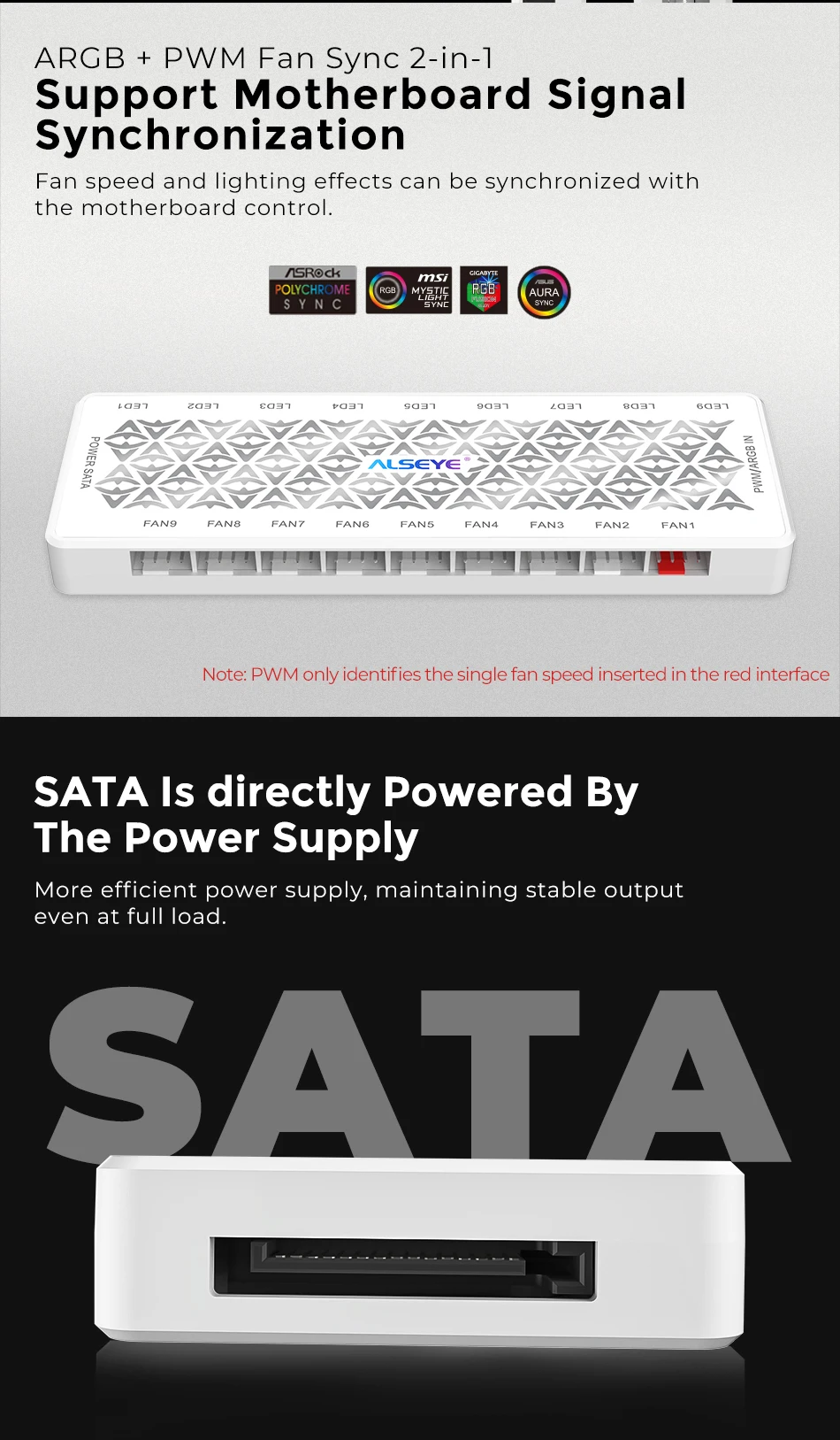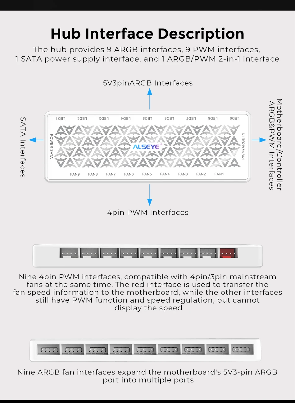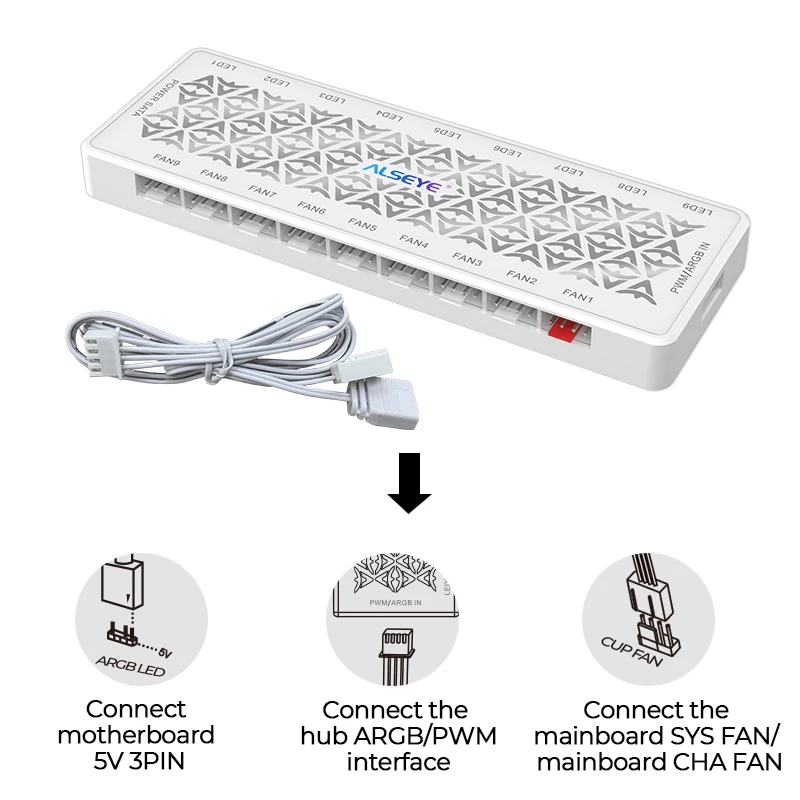 Comprar ALSEYE 5V 3pin ventilador Hub ARGB PWM 4pin 1 a 9 puertos divisor SATA potencia succión magnética ARGB ventilador controlador para caja de PC