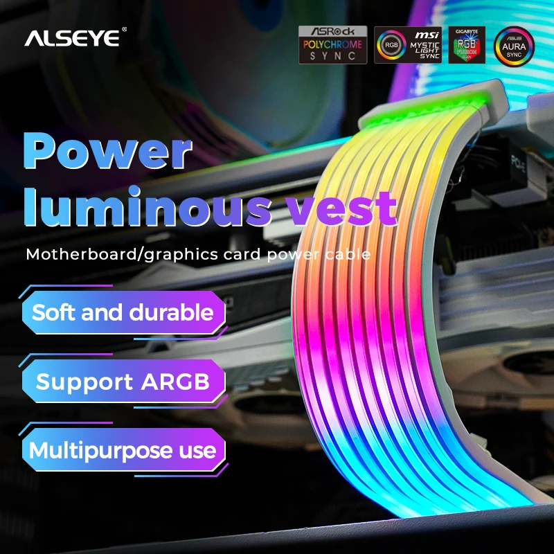 Comprar ALSEYE-Cable de extensión de potencia, lámpara de neón luminosa de 8/24 Pines, 5V, 3 pines, para ATX, GPU, funda de PC
