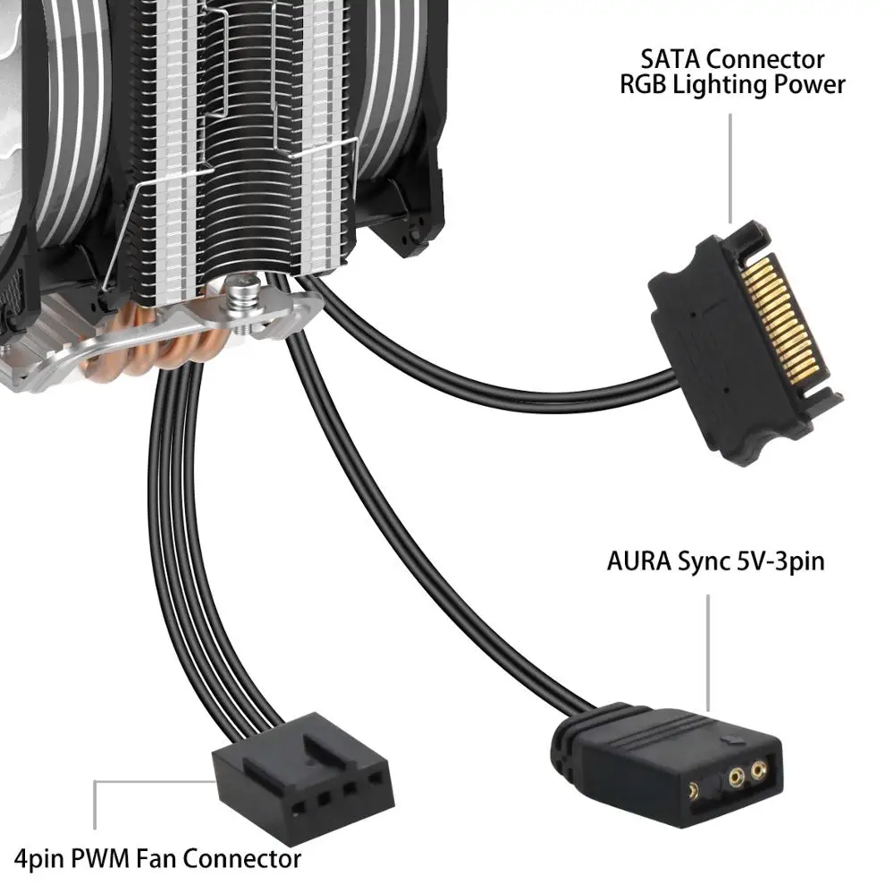 Comprar ALSEYE-enfriador de CPU M120D, iluminación RGB ajustable, 120mm, PWM, 4 pines, 5V-3 pines, Aura/RGB, soporte de enfriador de tubo de calor de fusión, LGA1200